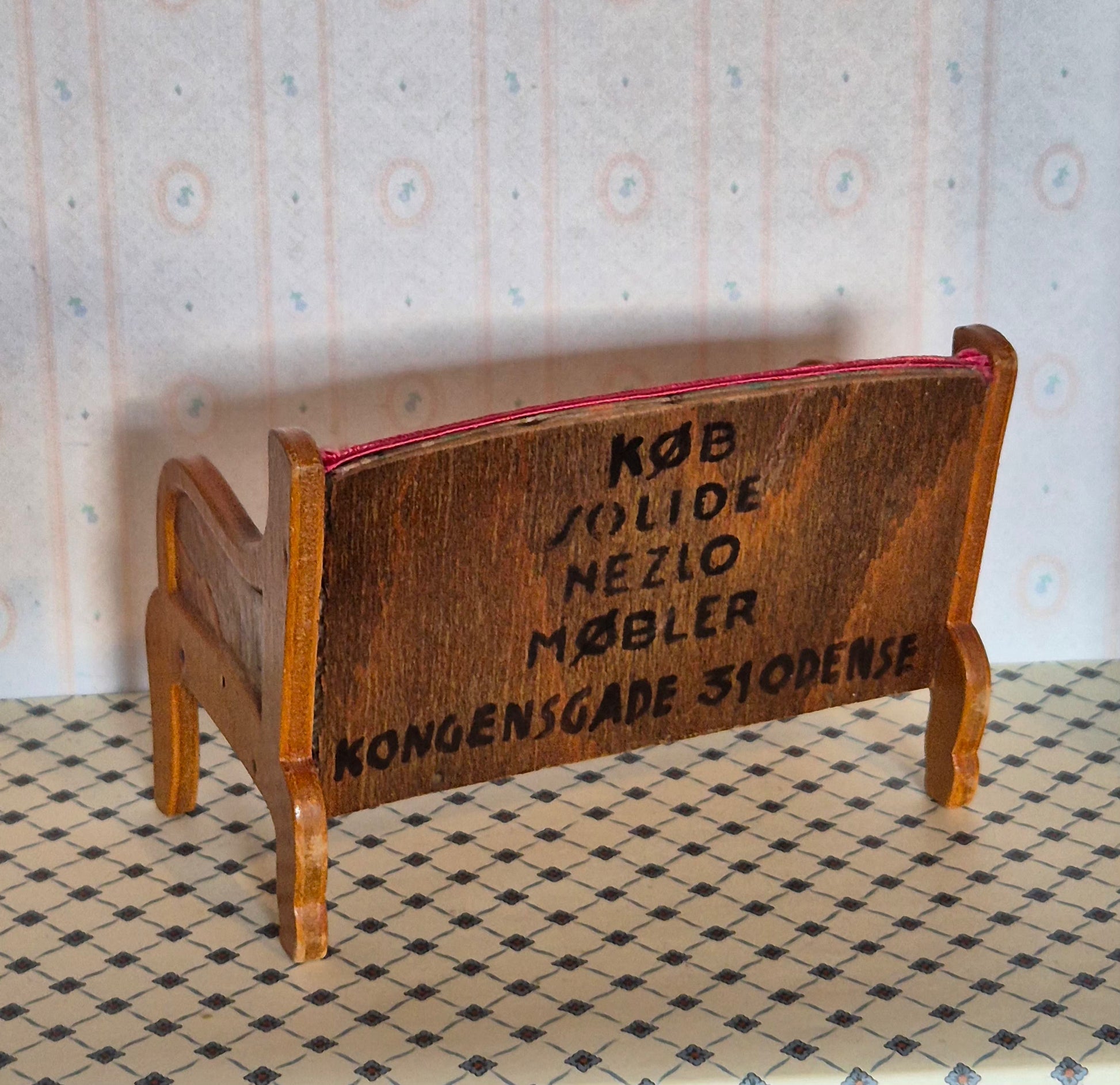 Pæn vintage sofa med stribet sædebetræk. Den er rummelig. Større end 1:12. Udmærket stand.