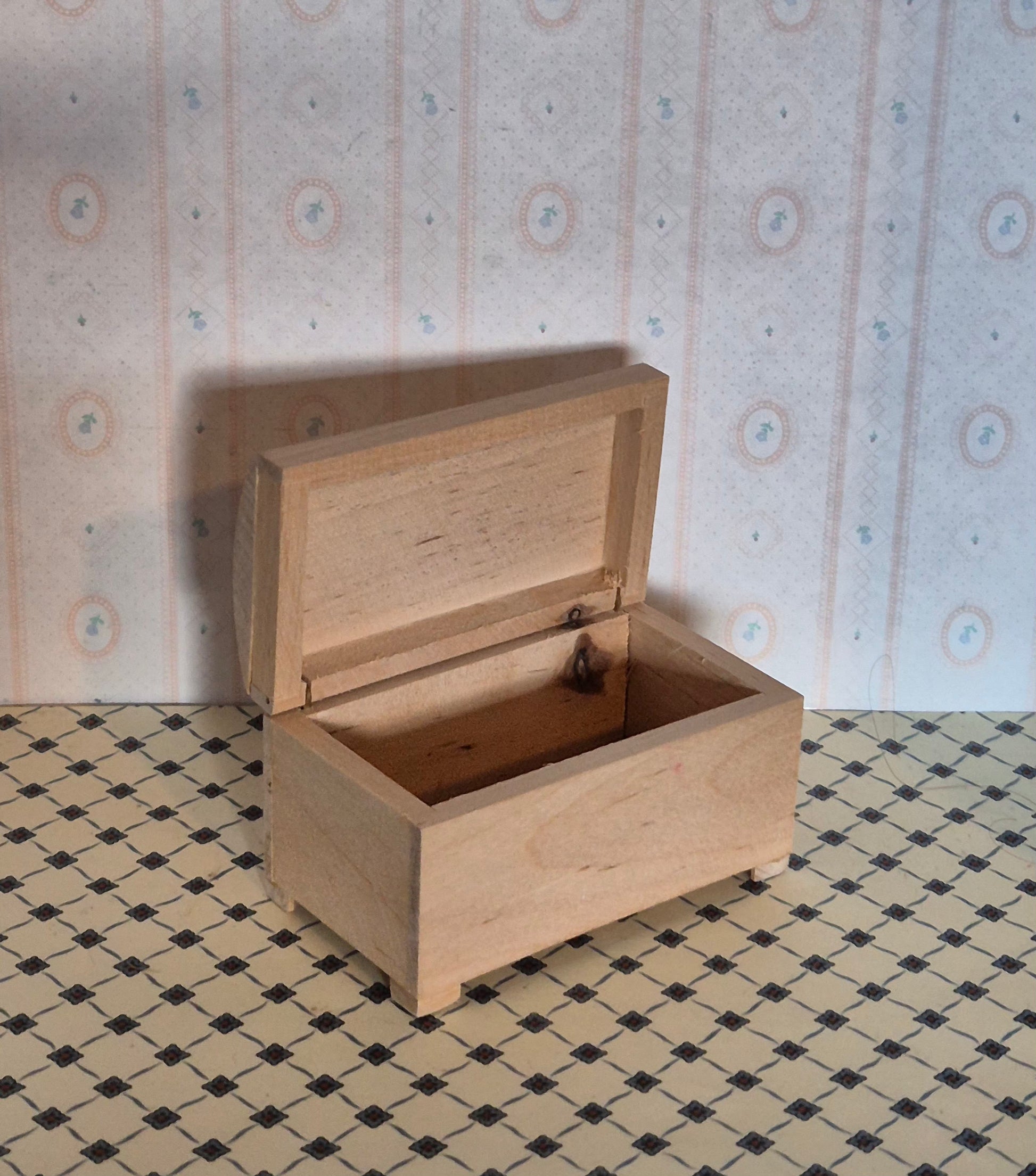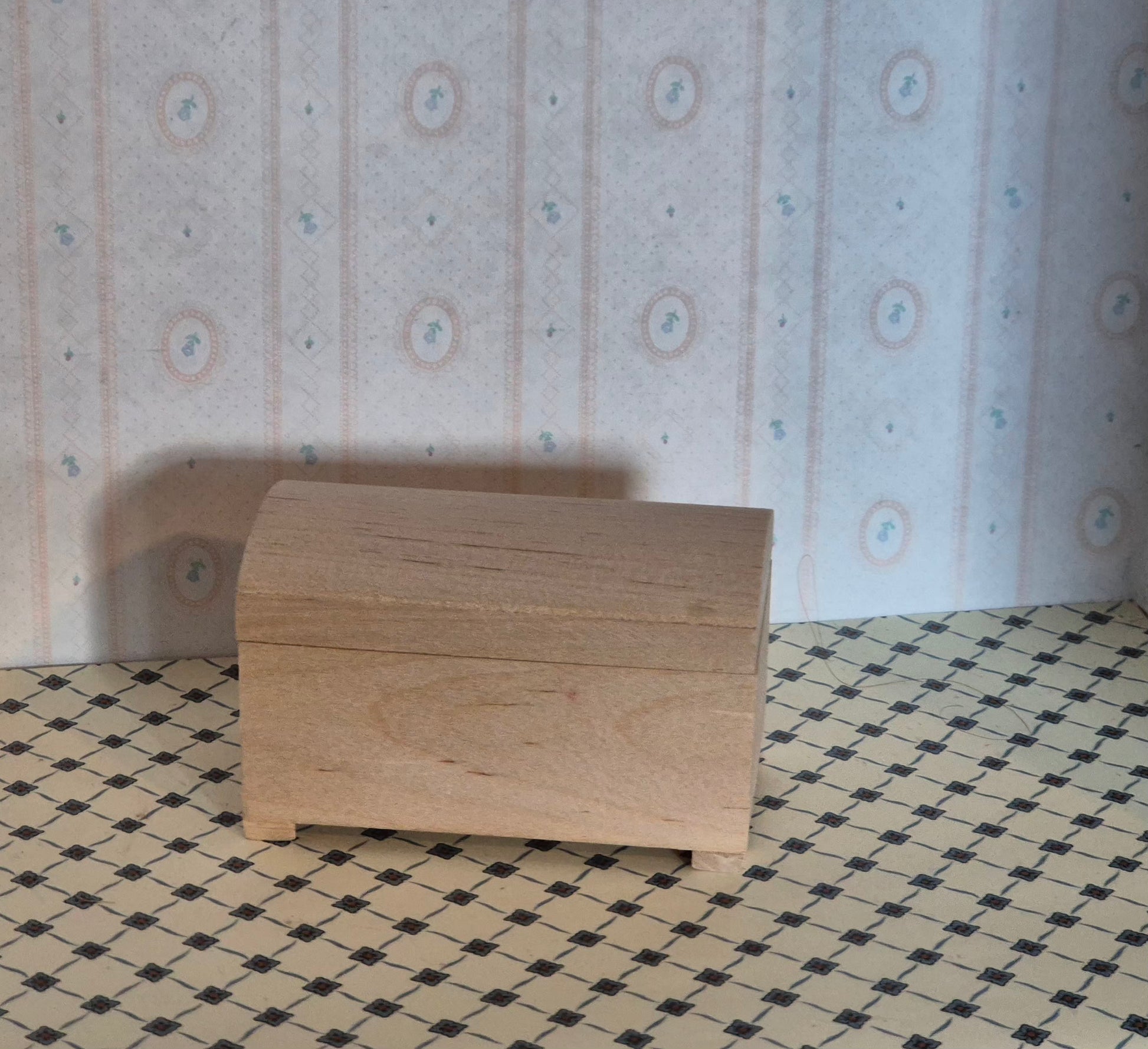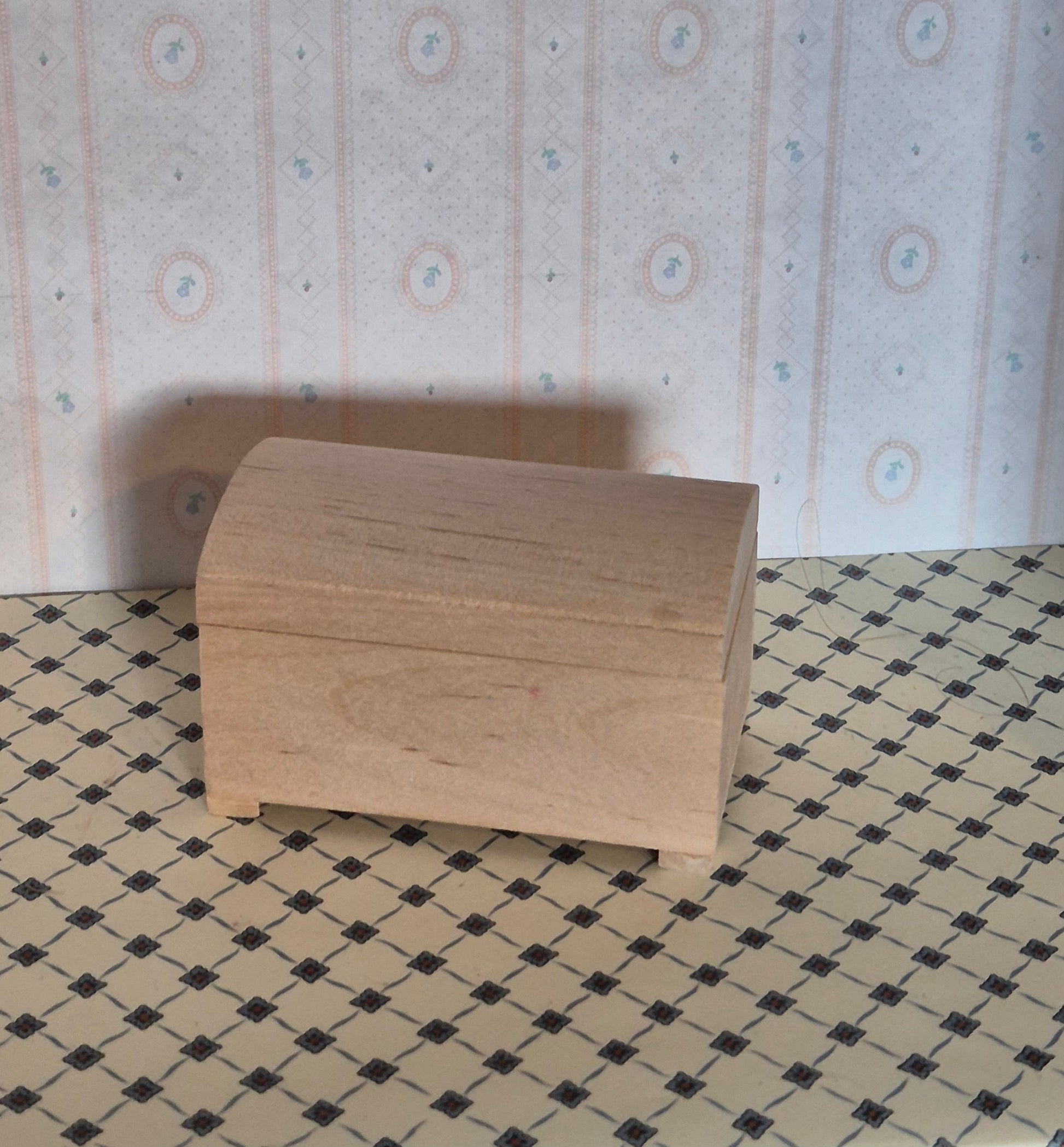 Pæn 1:12 kiste med buet låg af ubehandlet lyst træ. God fin stand.