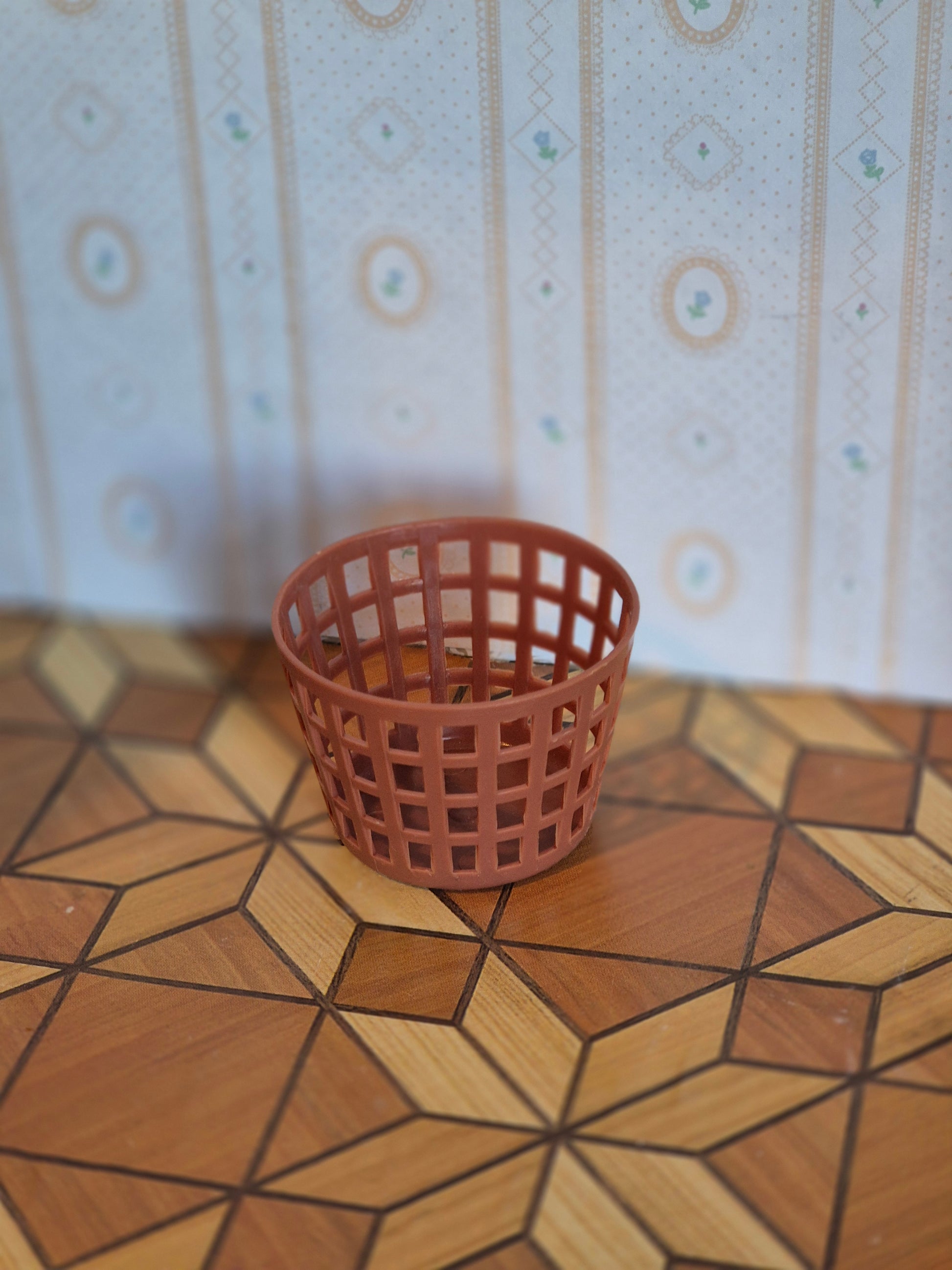 Vasketøjskurv til 1:12. Pæn. God stand. Den er af plast. Diameter 3,3 cm.