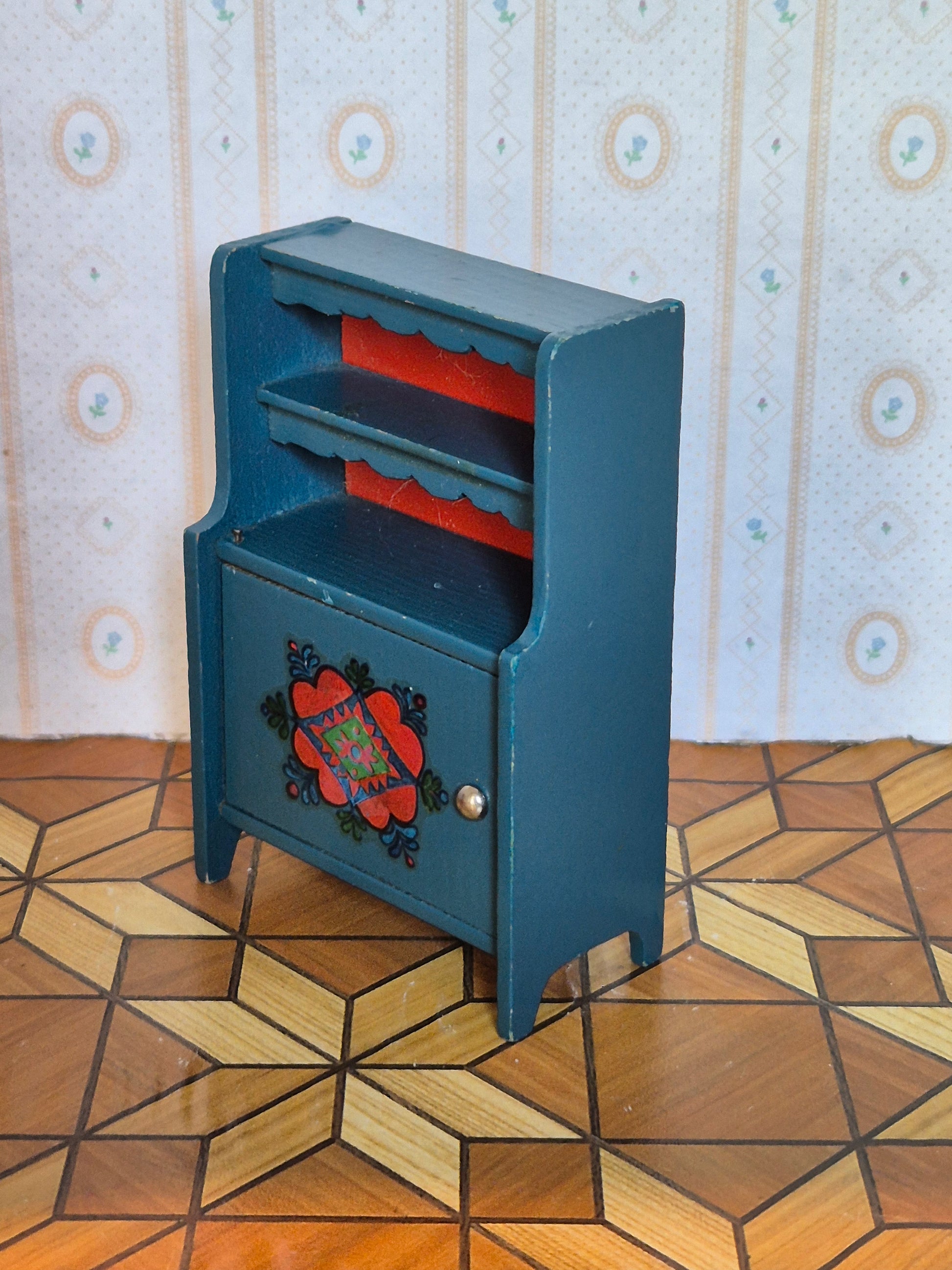 Mørkeblåt Lisa af Danmark vintage skab i blå almue stil fra starten af 1970erne, ses i katalog fra 1974. Udmærket stand med lidt patina og brugsspor.