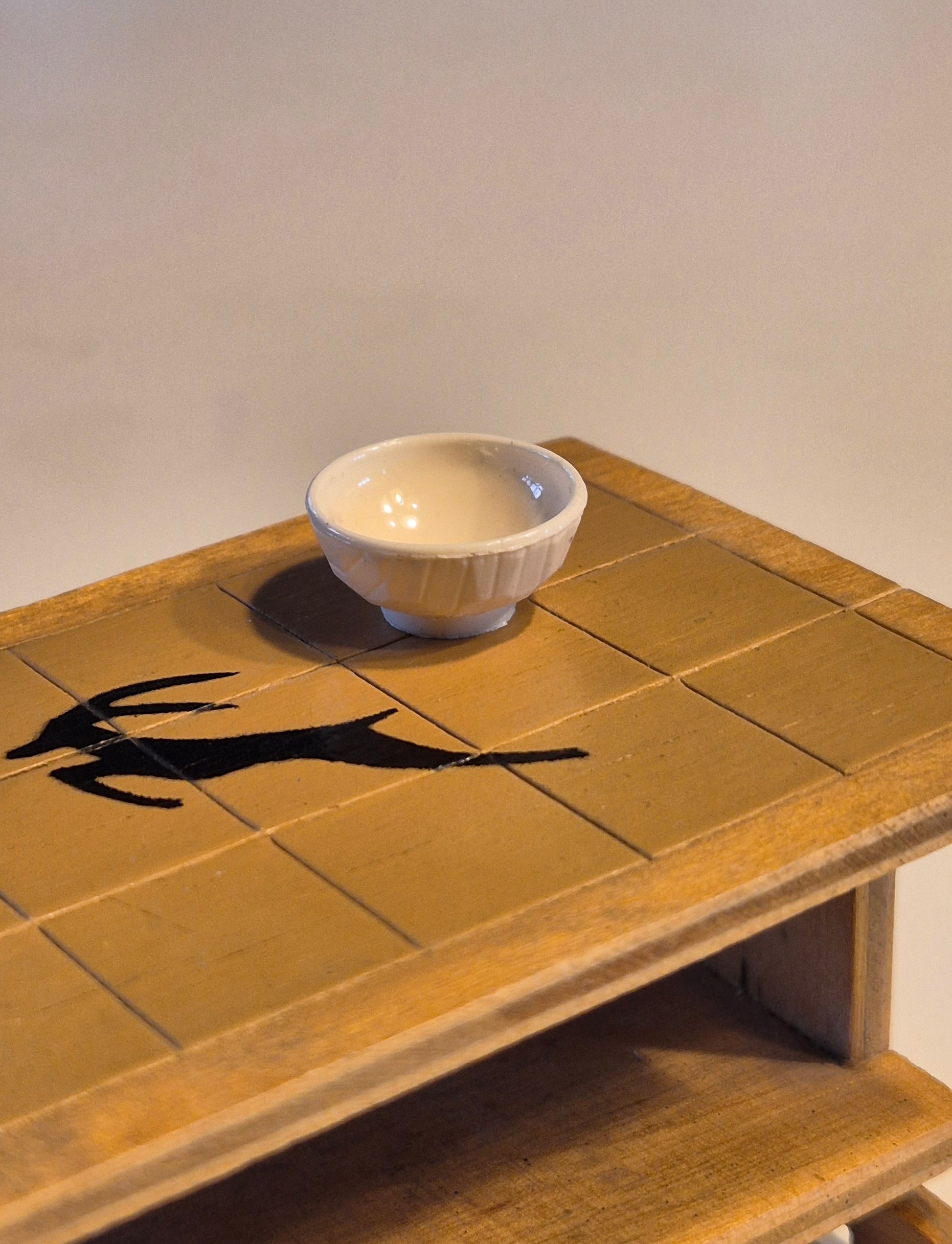 Pæn lille hvid skål med mønster på siden. Diameter ca 1,2 cm.