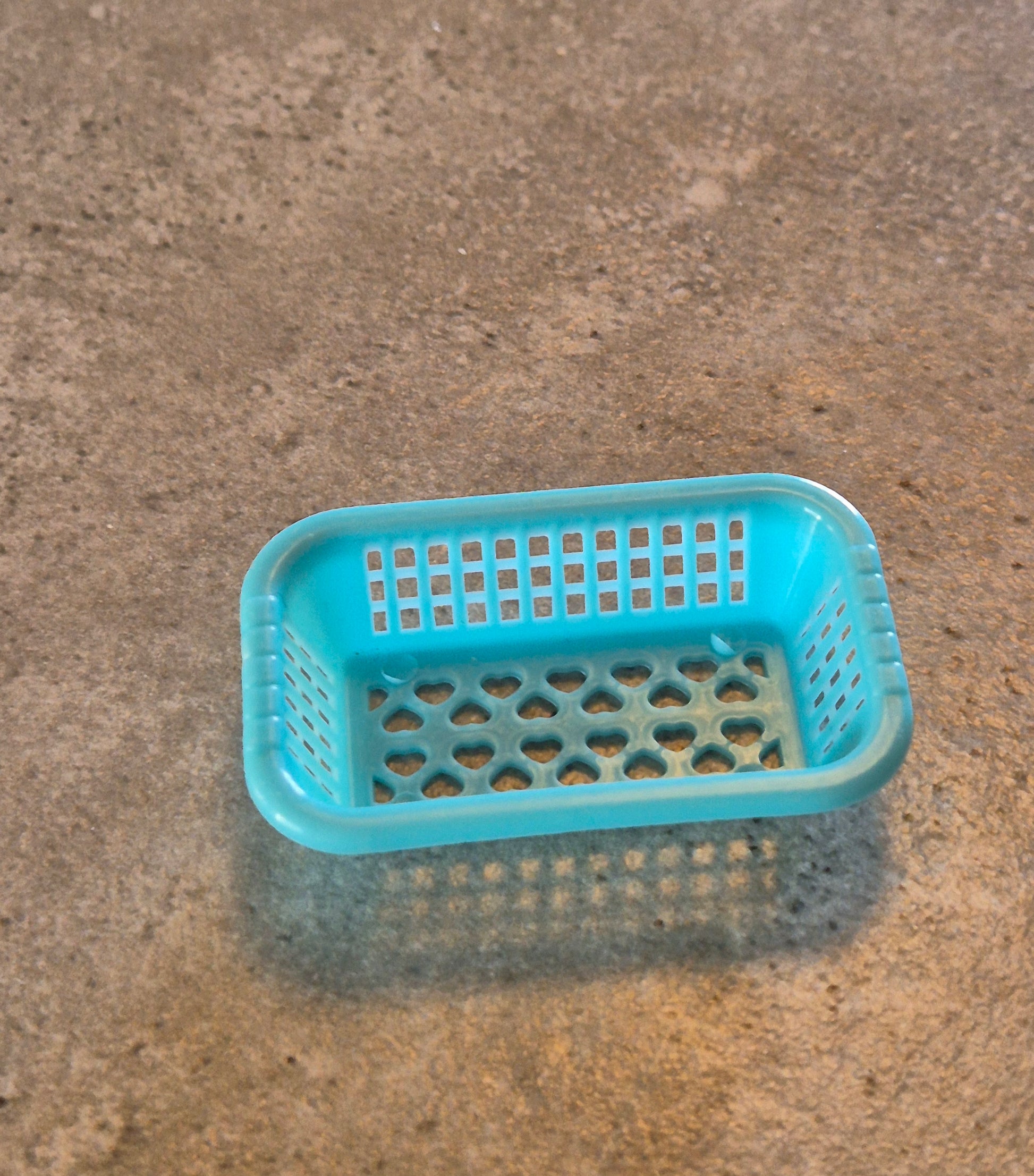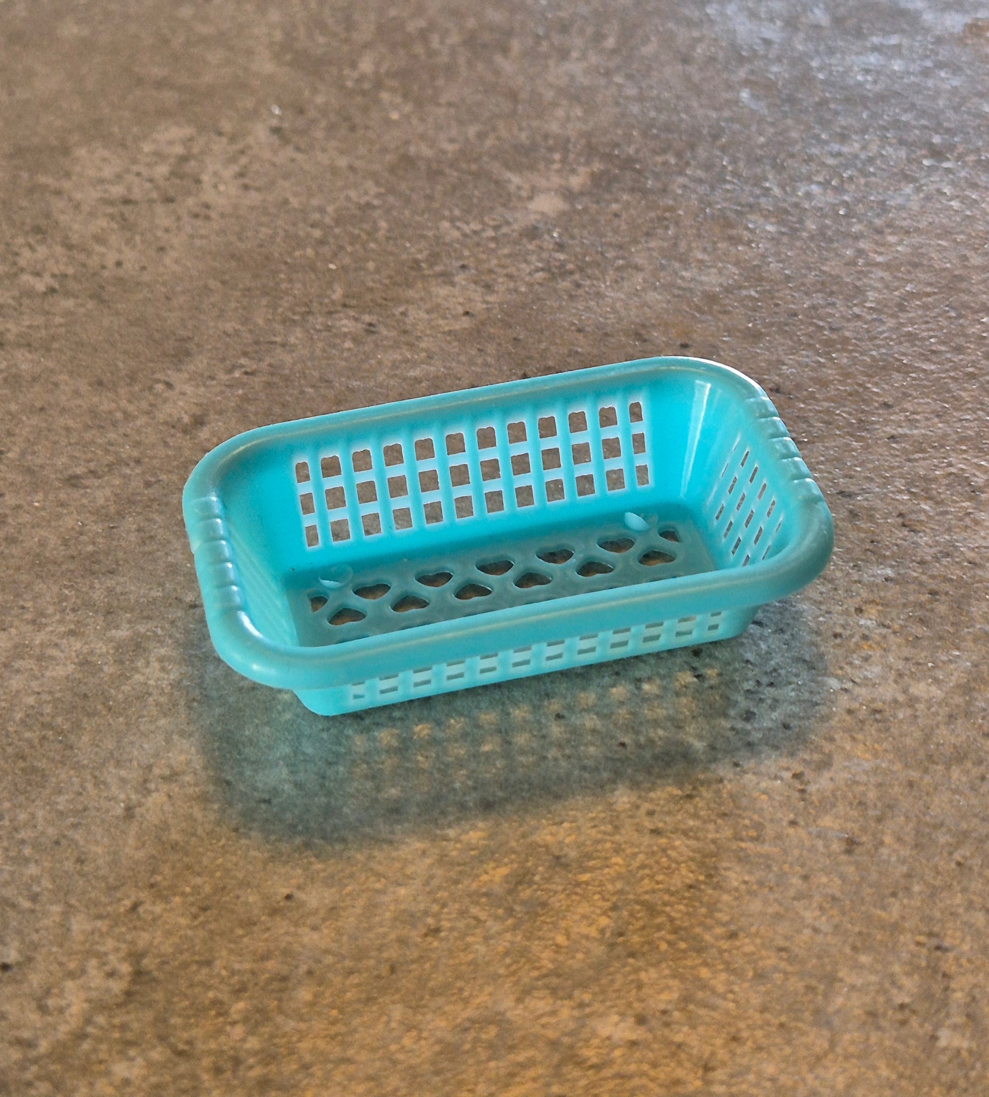 Fin aflang kurv af plast. Vasketøjskurv eller balje til bryggerset eller køkkenet.