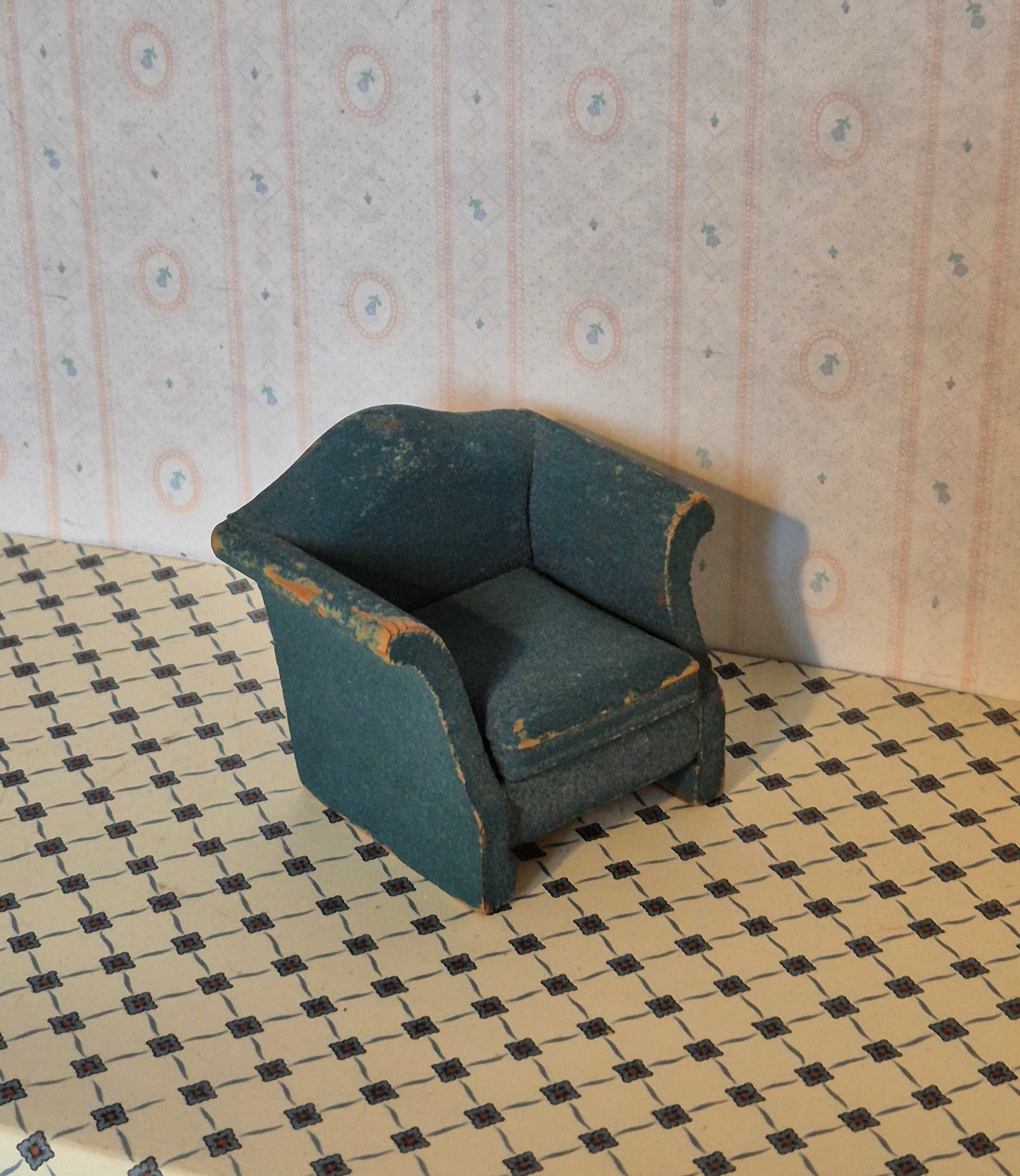 God ældre / vintage Lerro lænestol 1:16 i blå træ.