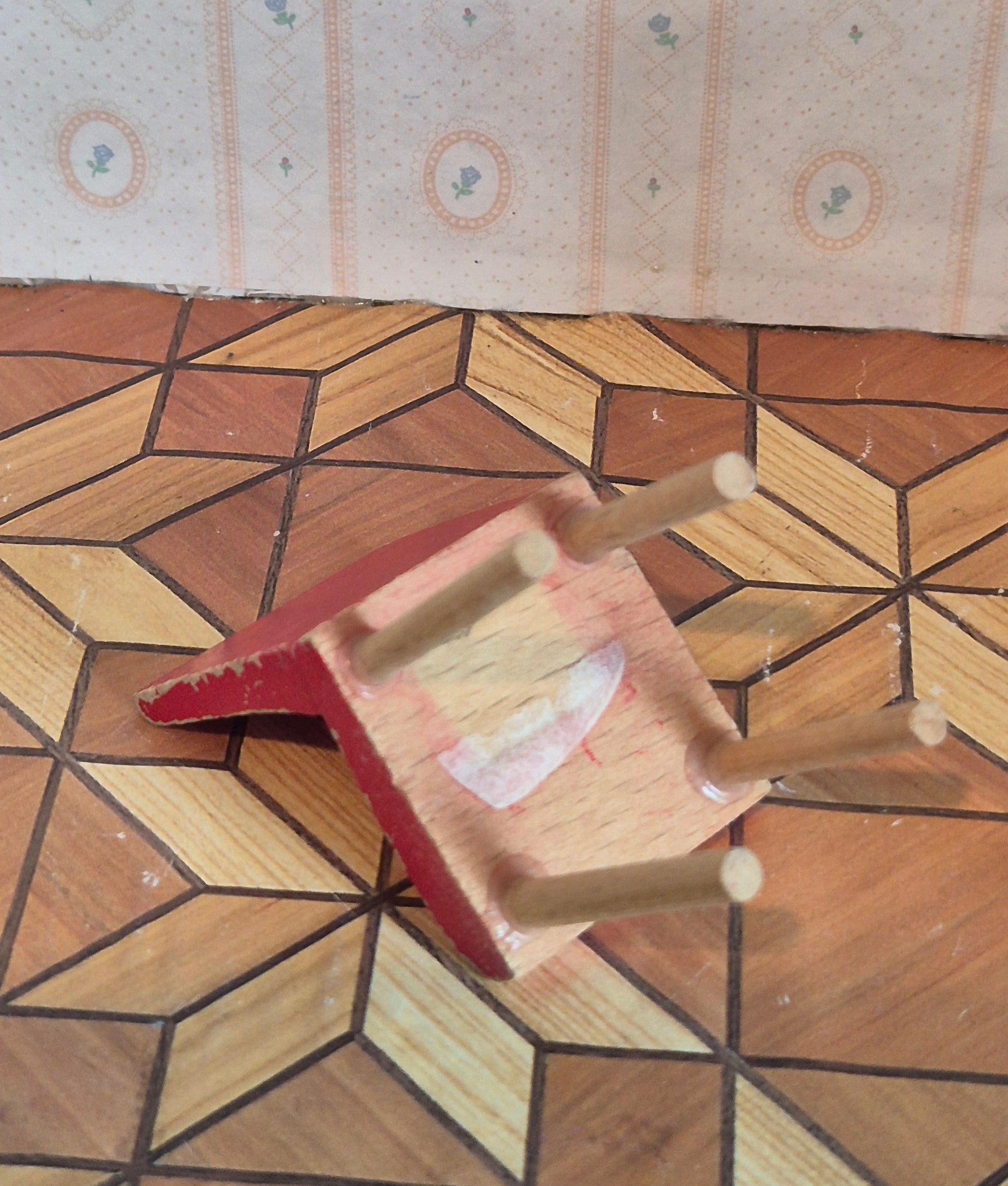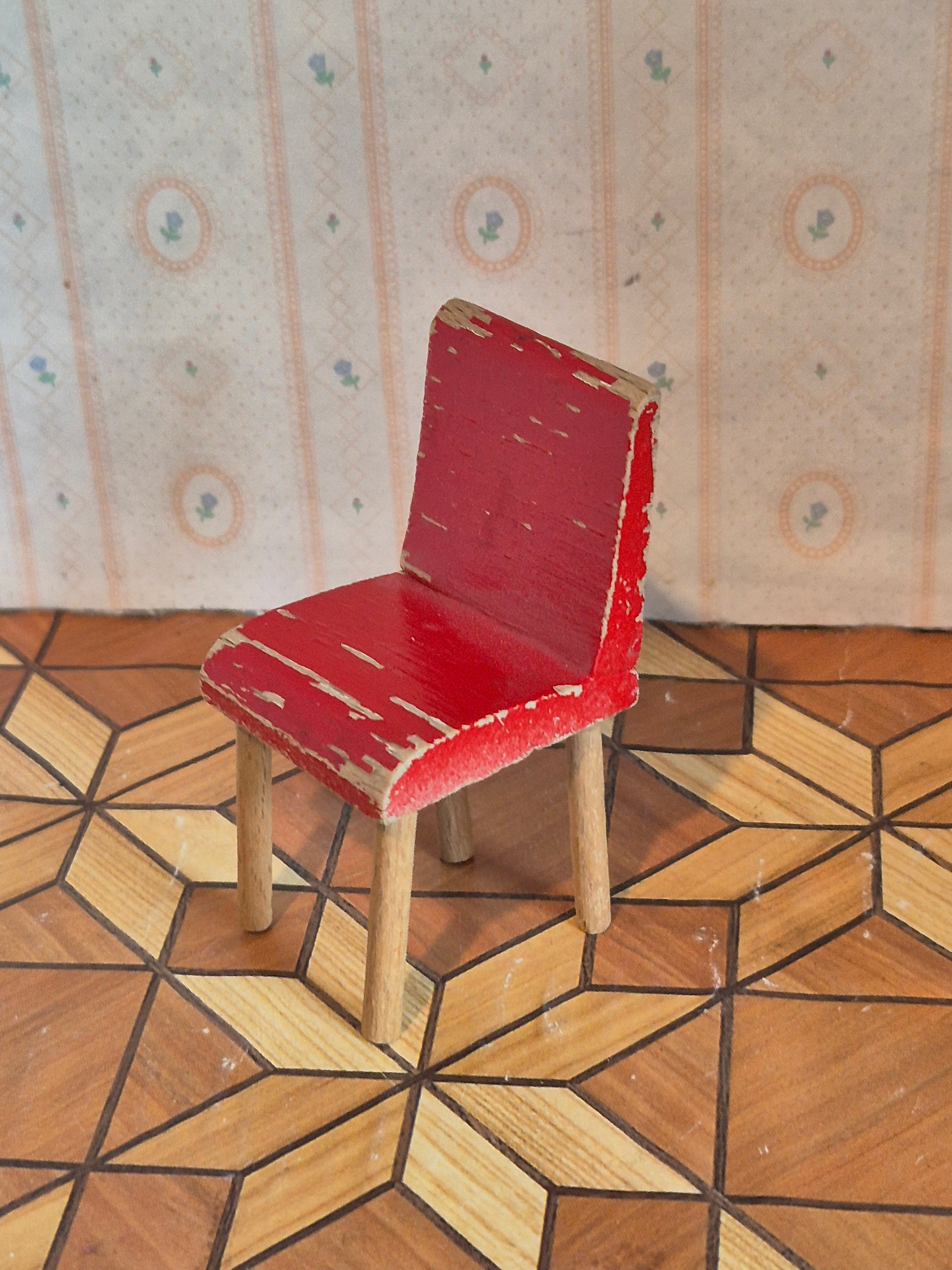 Ret sjælden 1:16 Lerro stol af træ i rød. Den er fra 1960erne.