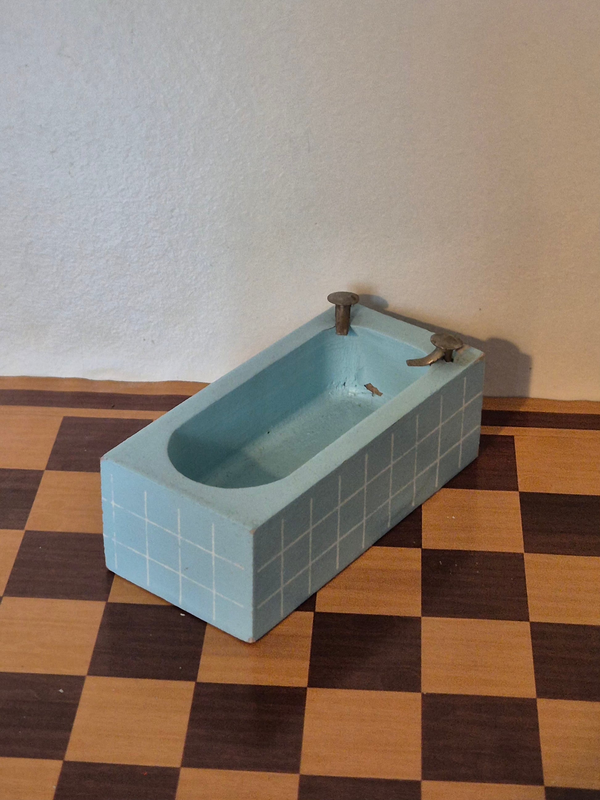 Rigtig pænt og fint badekar af træ i tyrkis af mærket Lisa af Danmark. Der er lidt patina. Pæn stand