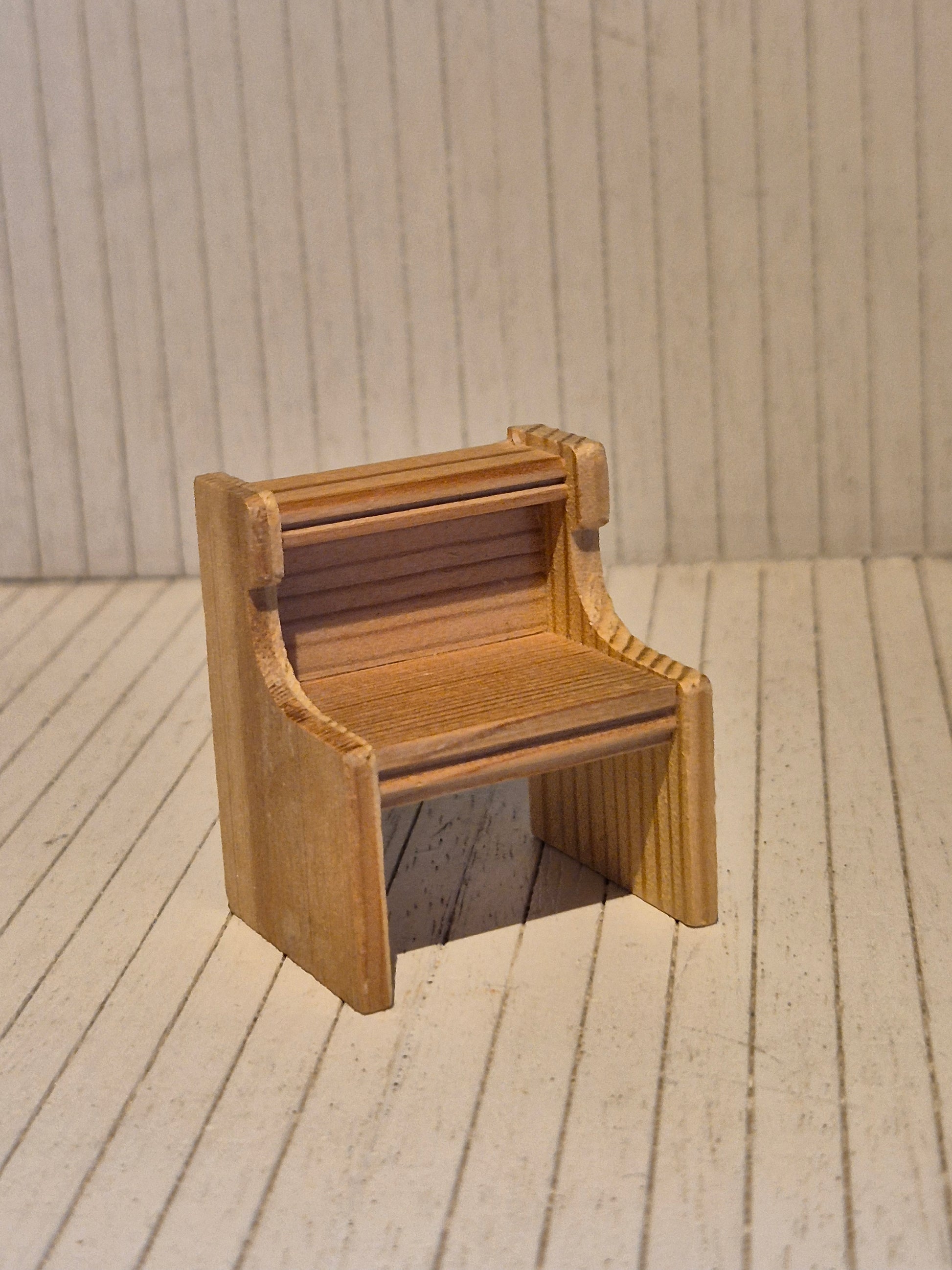 Lundby dukkehusmøbel, natbord i ubehanglet træ, til soveværelset eller børneværelset. Den er pæn, dog brugt og har både brugsspor såvel som patina.