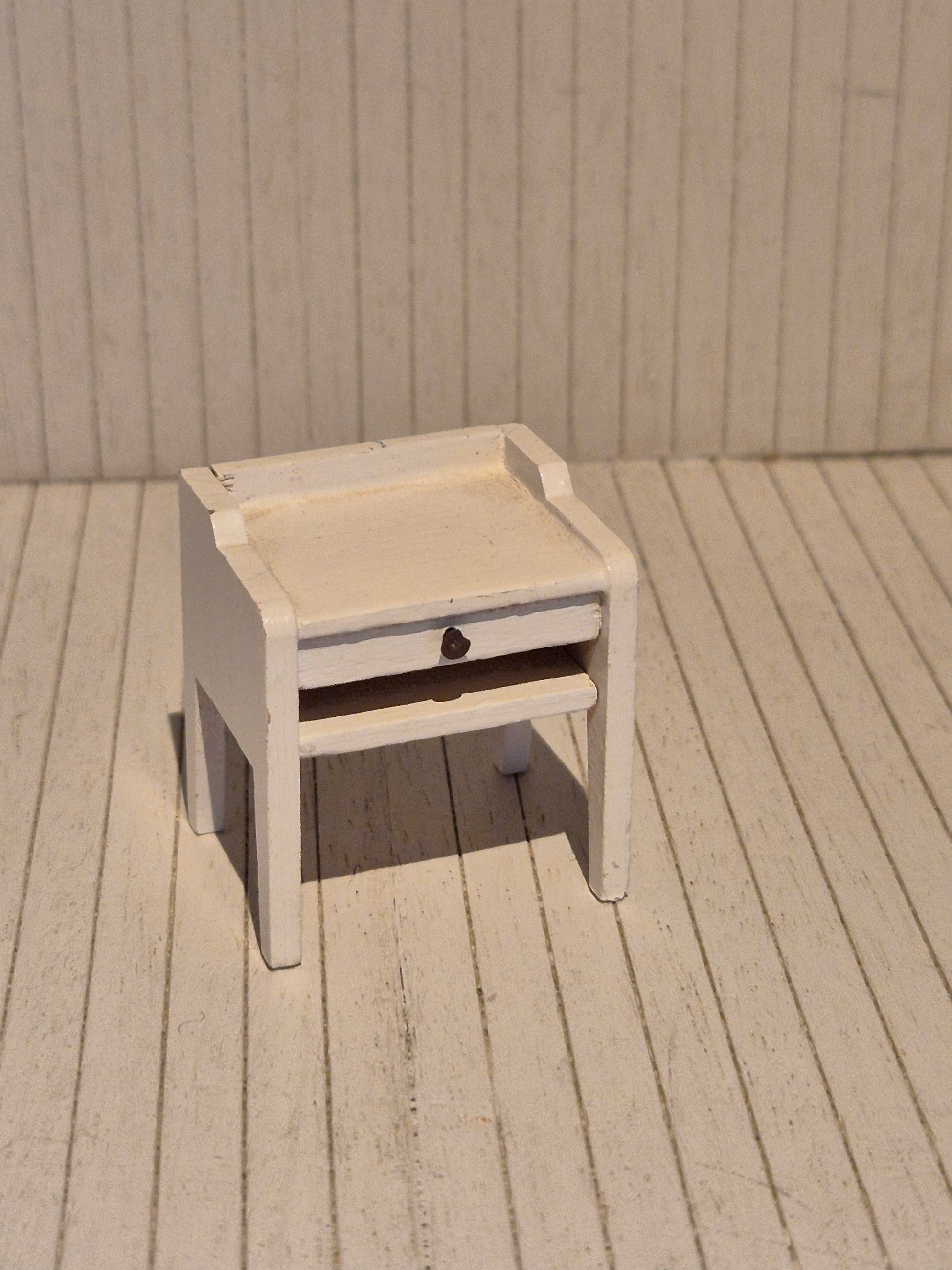 Pænt ældre natbord af Lundby i hvid træ. Det har patina og brugsspor, dog er standen rigtig god. Det er et pænt møbel til soveværelset, til sengen.