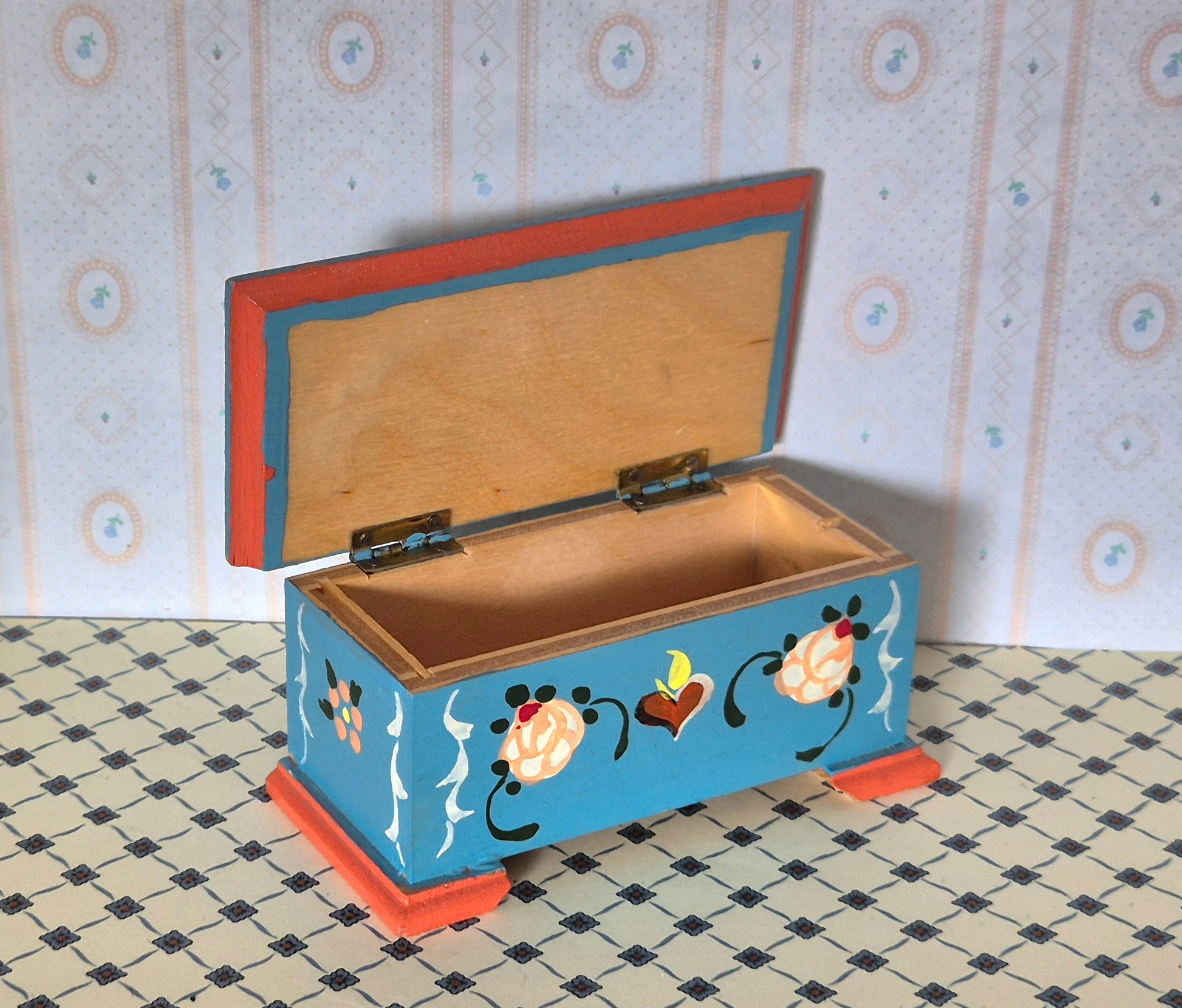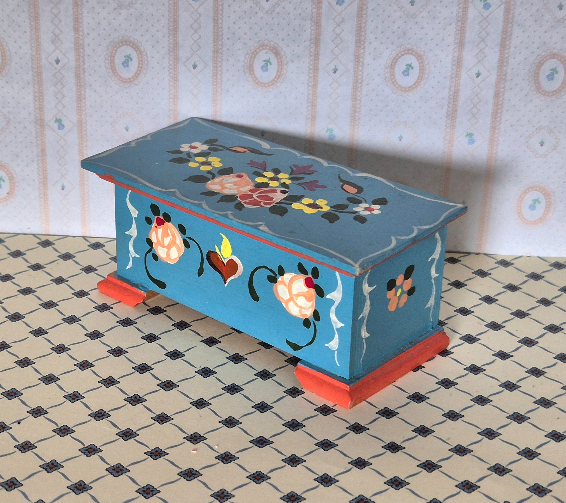 Pæn vintage kiste 1:12 af mærket Dora Kuhn. Det er træ. Vintage og fint.