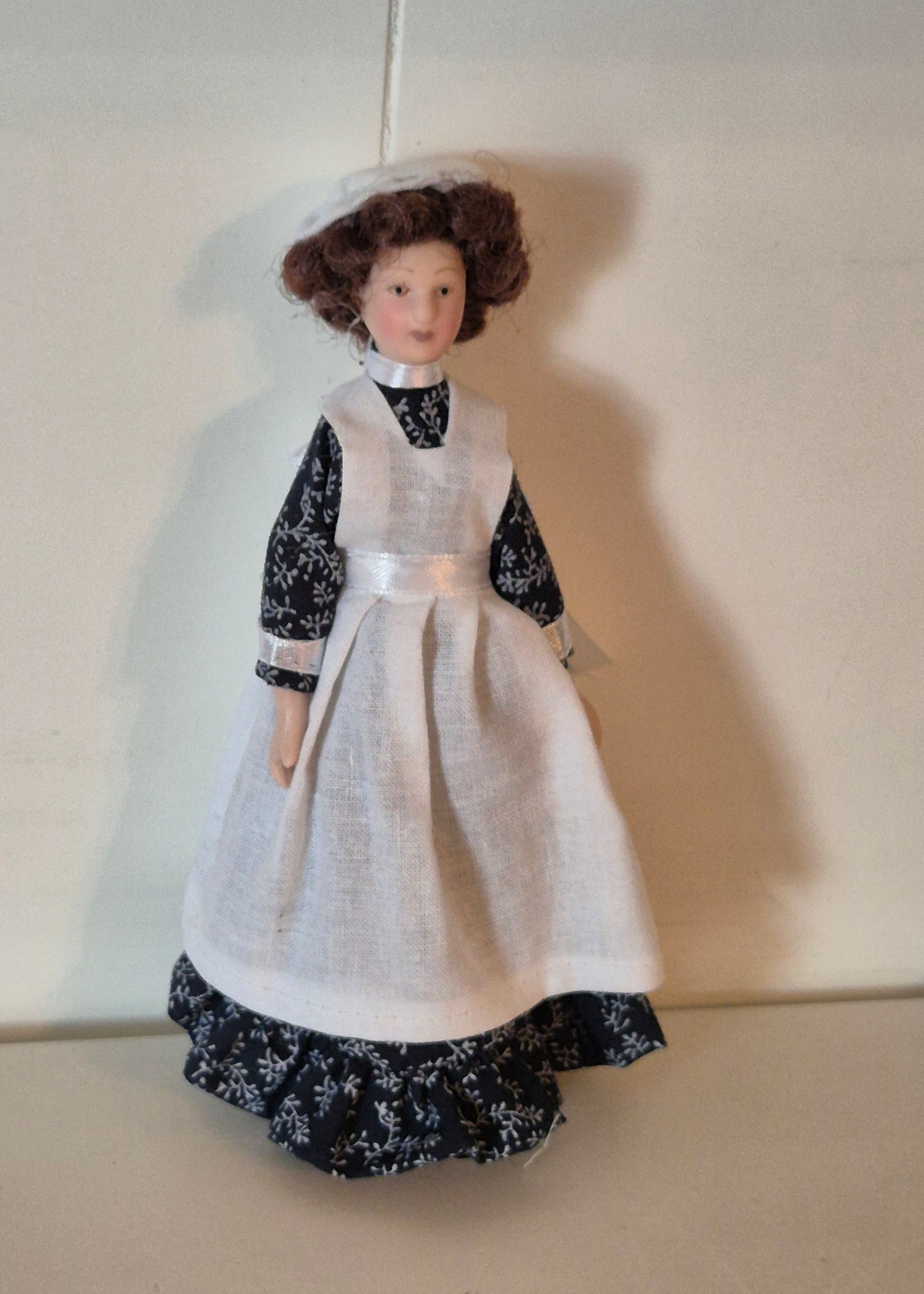 1:12 Dollhouse doll made of porcelain. Nice and fine porcelain doll. Very good condition.