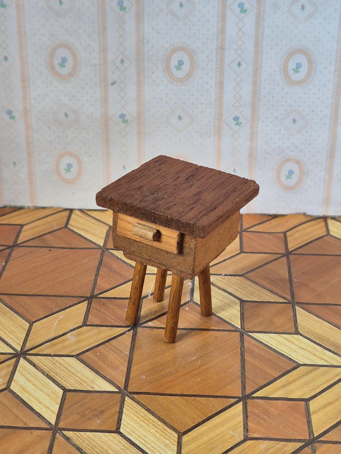 1:12 Fint vintage natbord eller sidebord af Sallingboe, dansk kvalitetsdesign. Det er pænt.