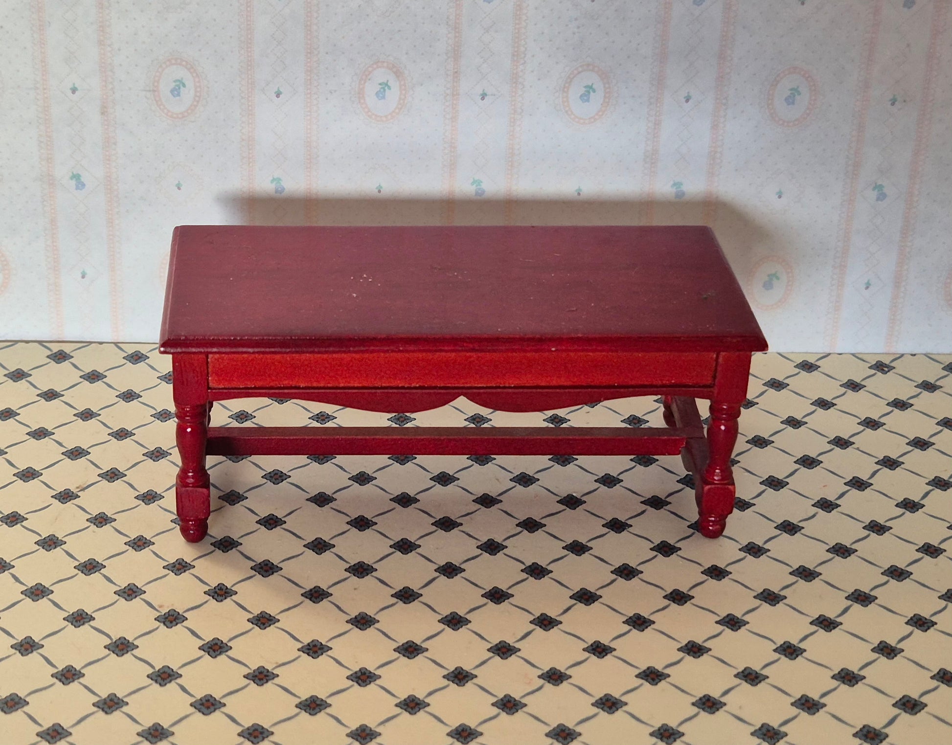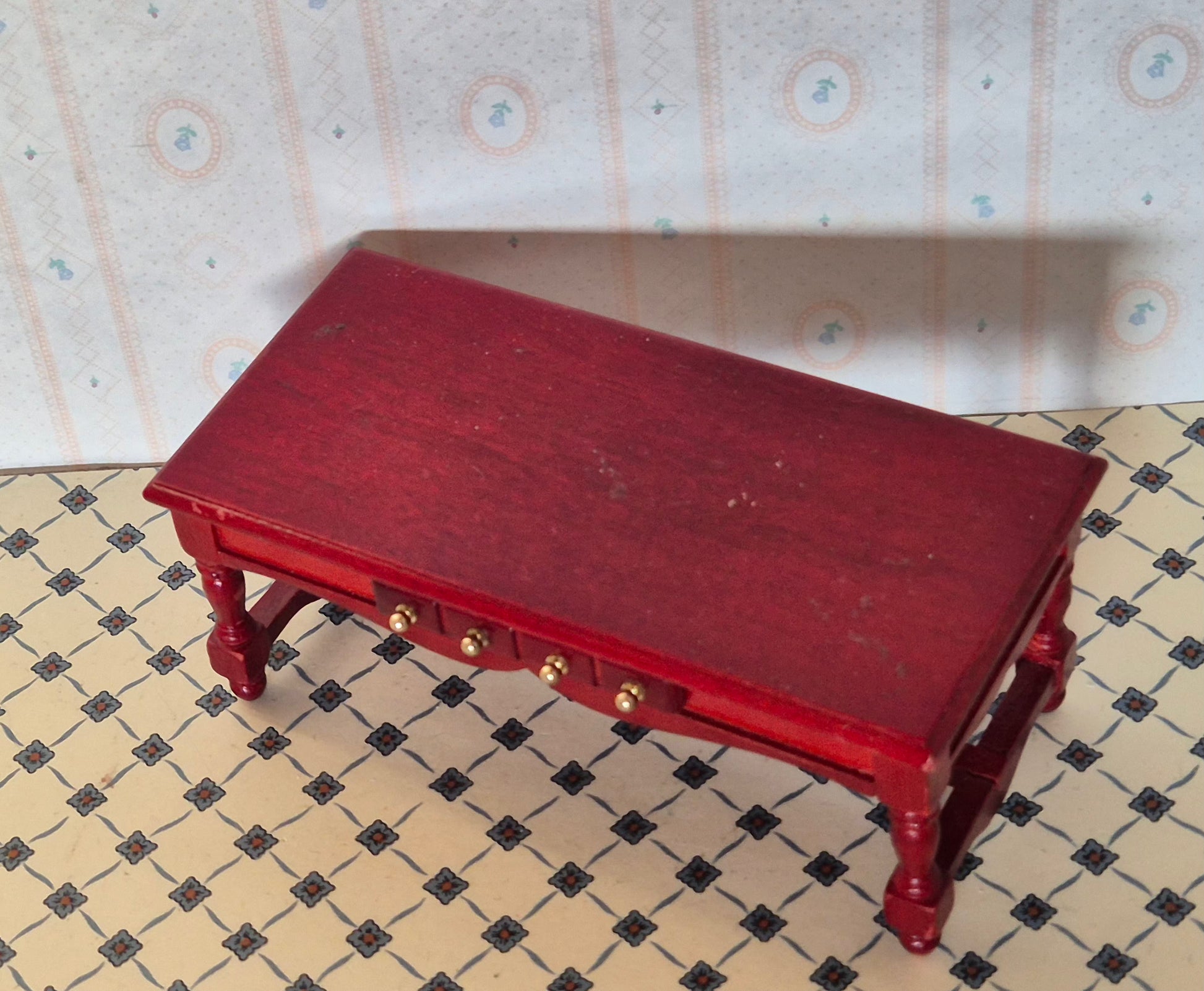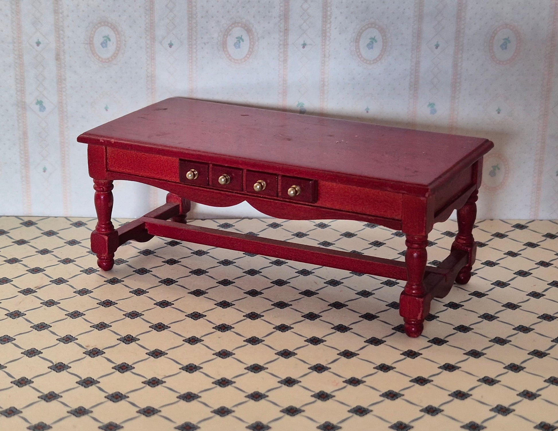 Pænt sofabord i 1:12 af træ i rødbrun maghoni-look. God stand