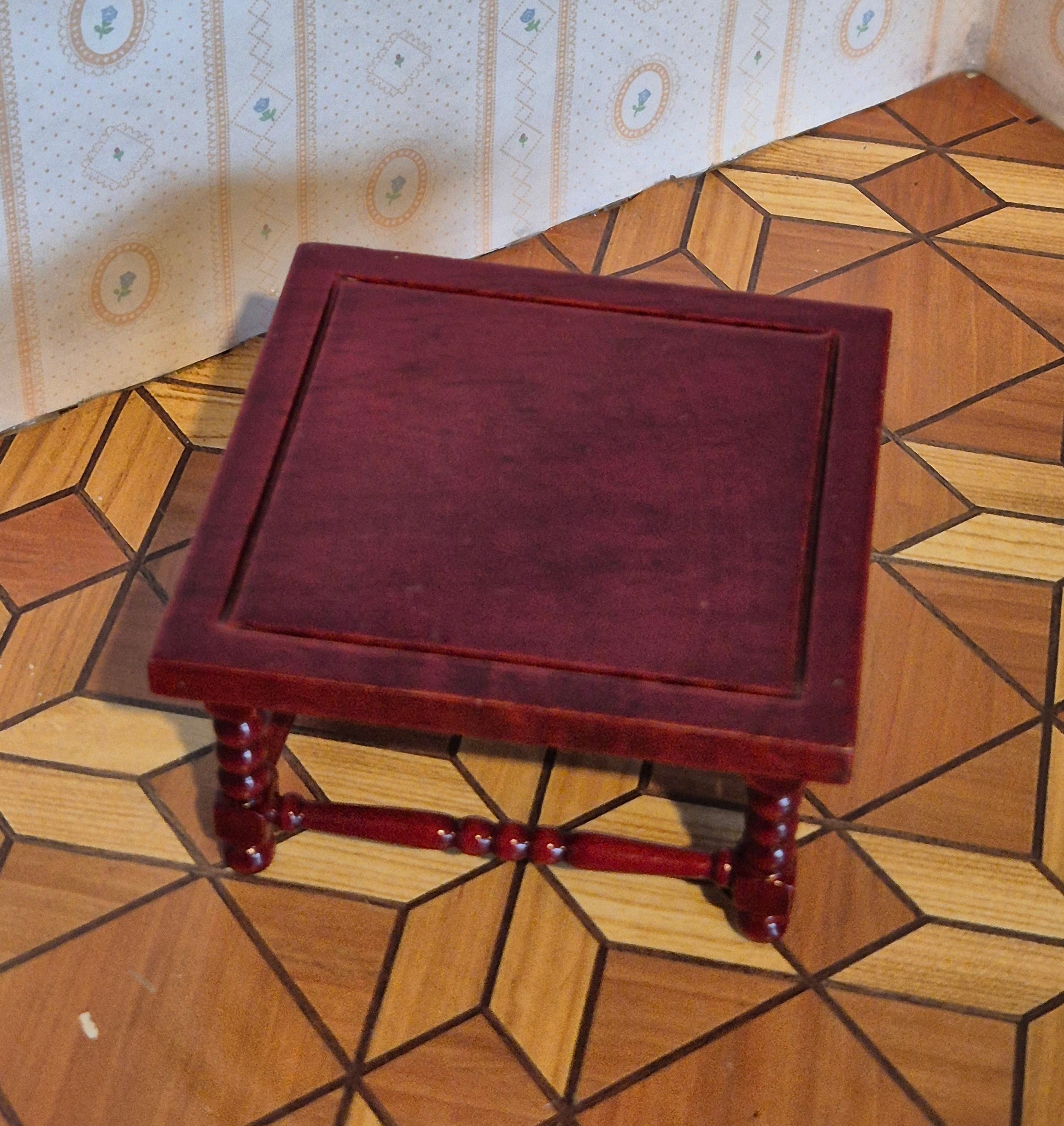 Kvadratisk sofabord i rødbrun nuance str 1:12. Pænt med fine detaljer.