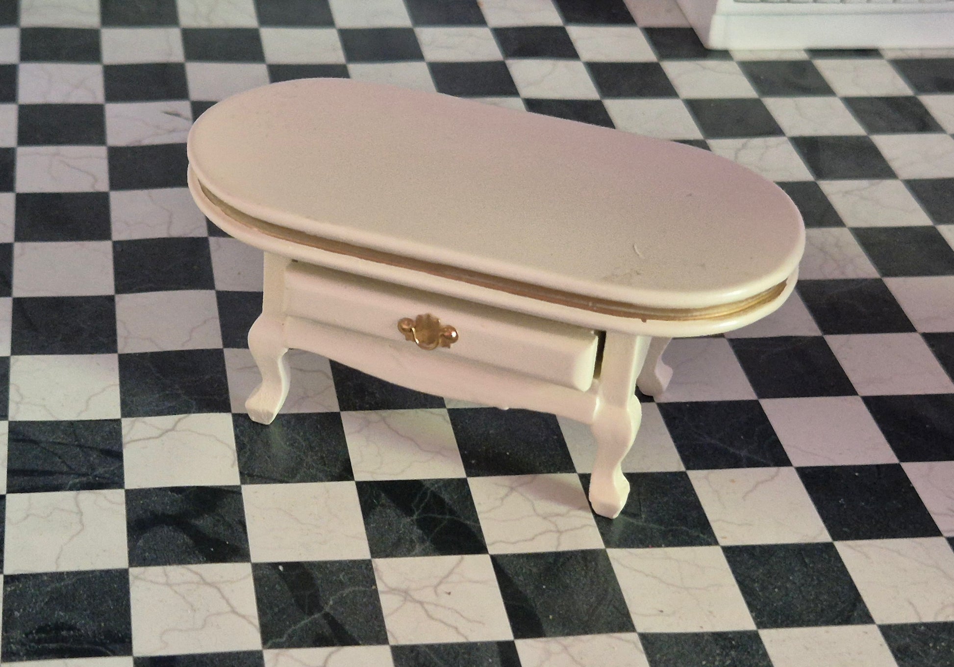 Rigtig fint sofabord i hvid med fine detaljer og lille skuffe.