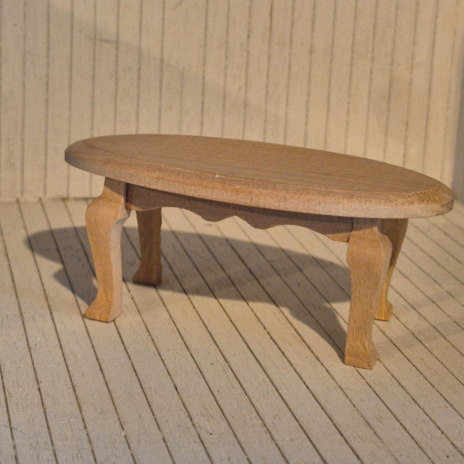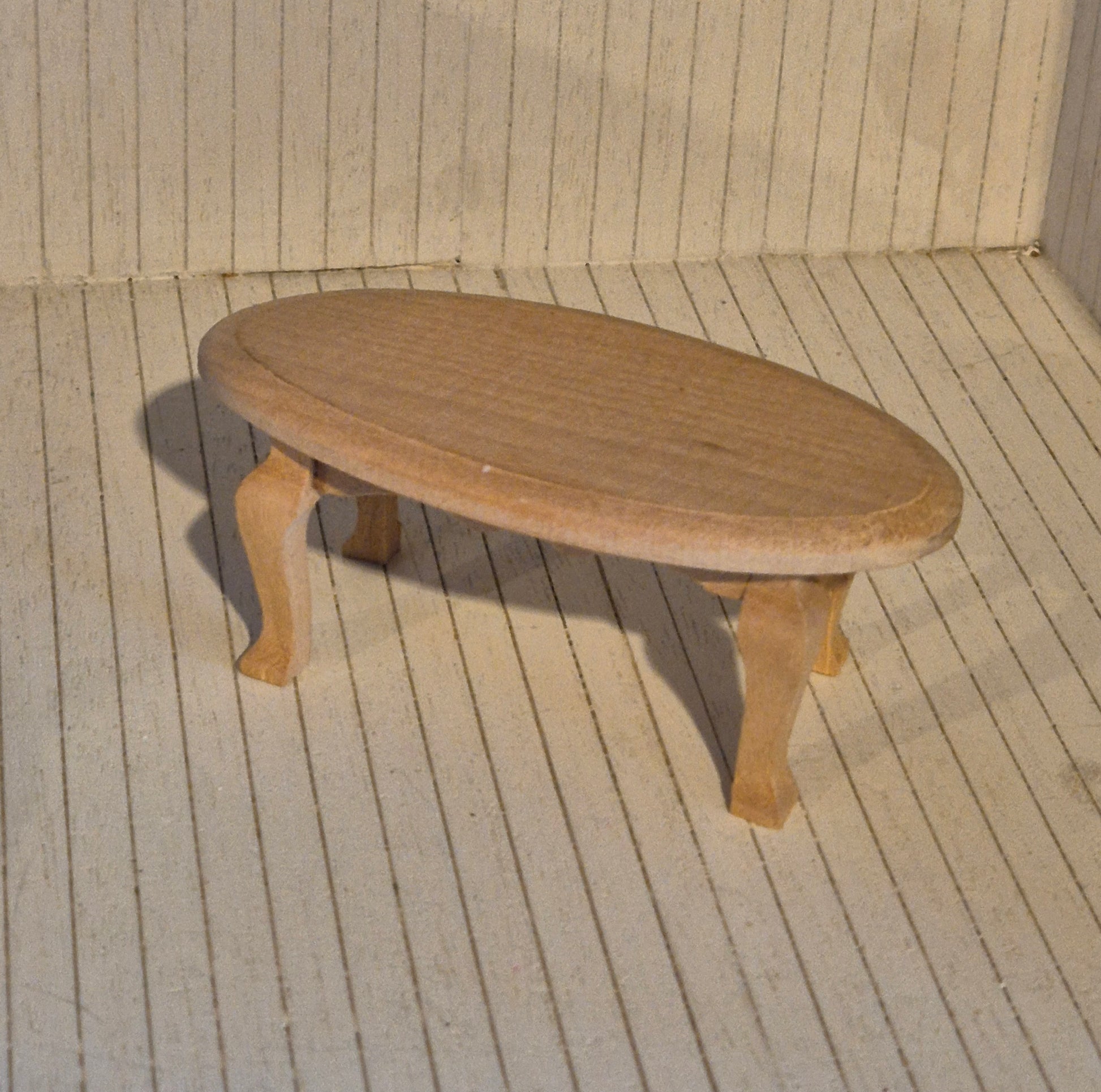 Pænt 1:12 sofabord i råt ubehandlet træ med pæne detaljer og forholdsvis velholdt.