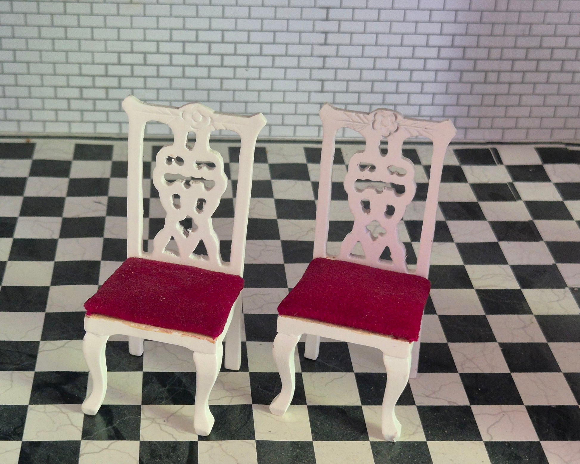 2 stole i hvid med rødt sæde i 1:12