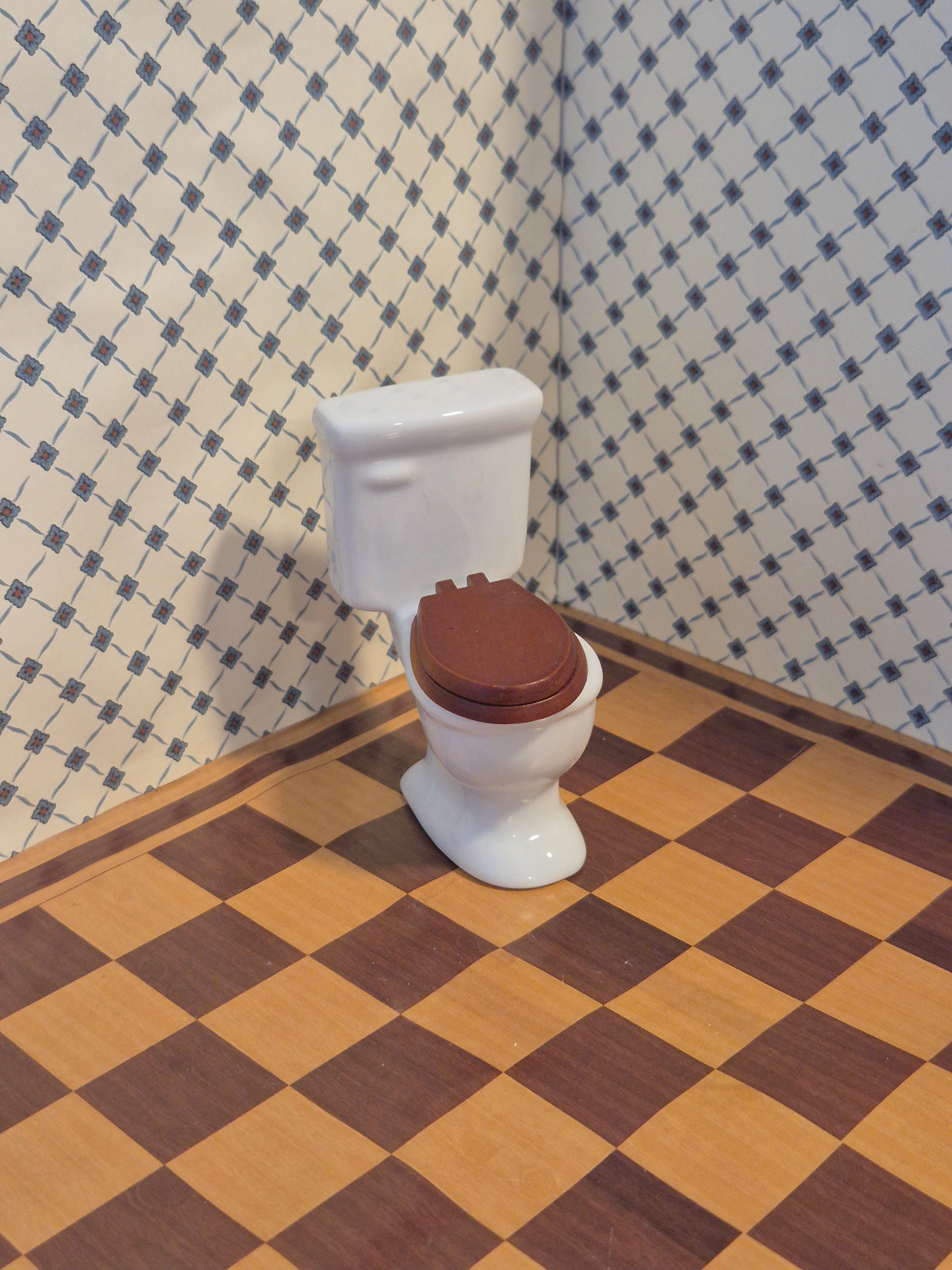 Godt 1:12 toilet af porcelæn med løst toiletbræt.