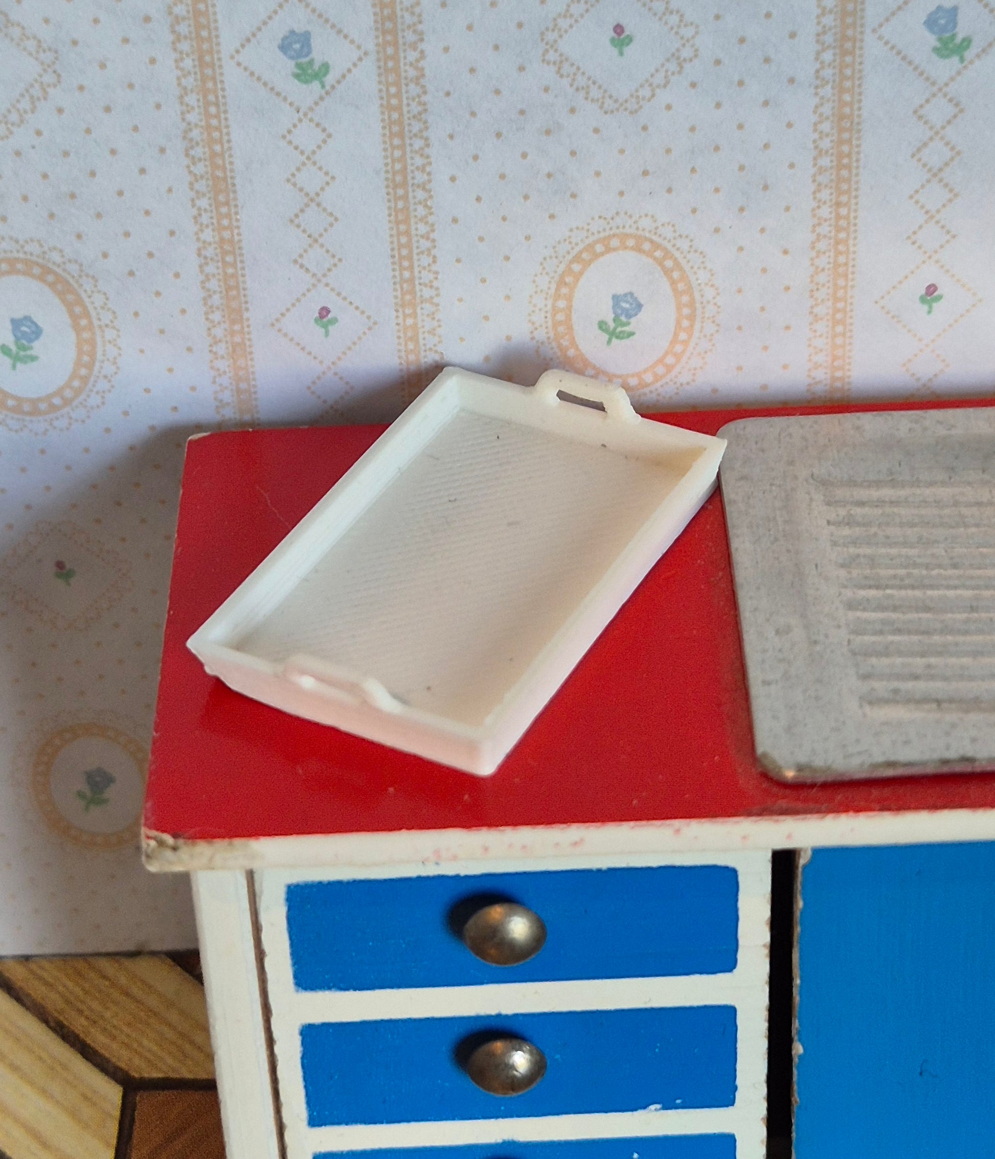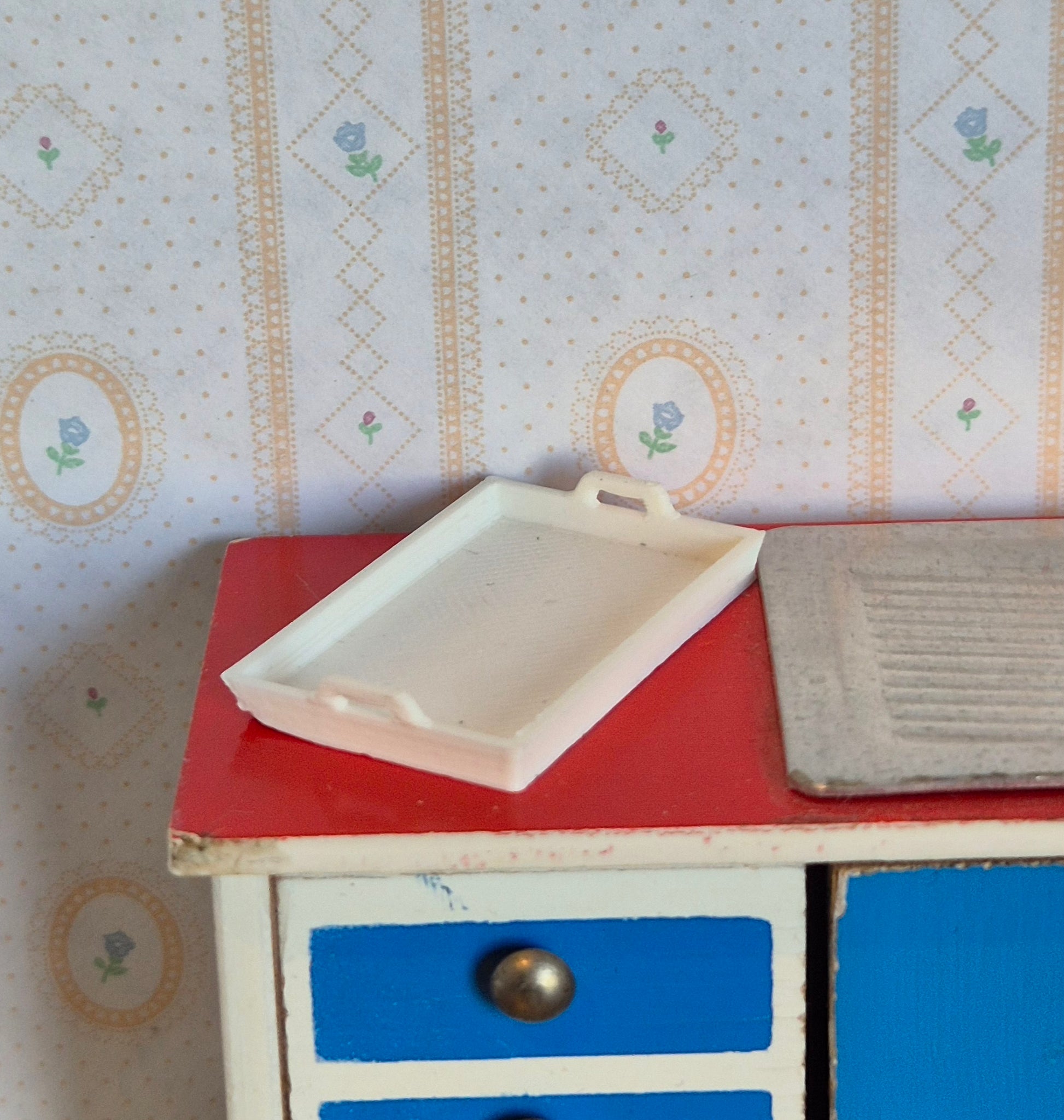Pæn hvidt bakke til dukkehus køkkenet i str 1:18/1:16.