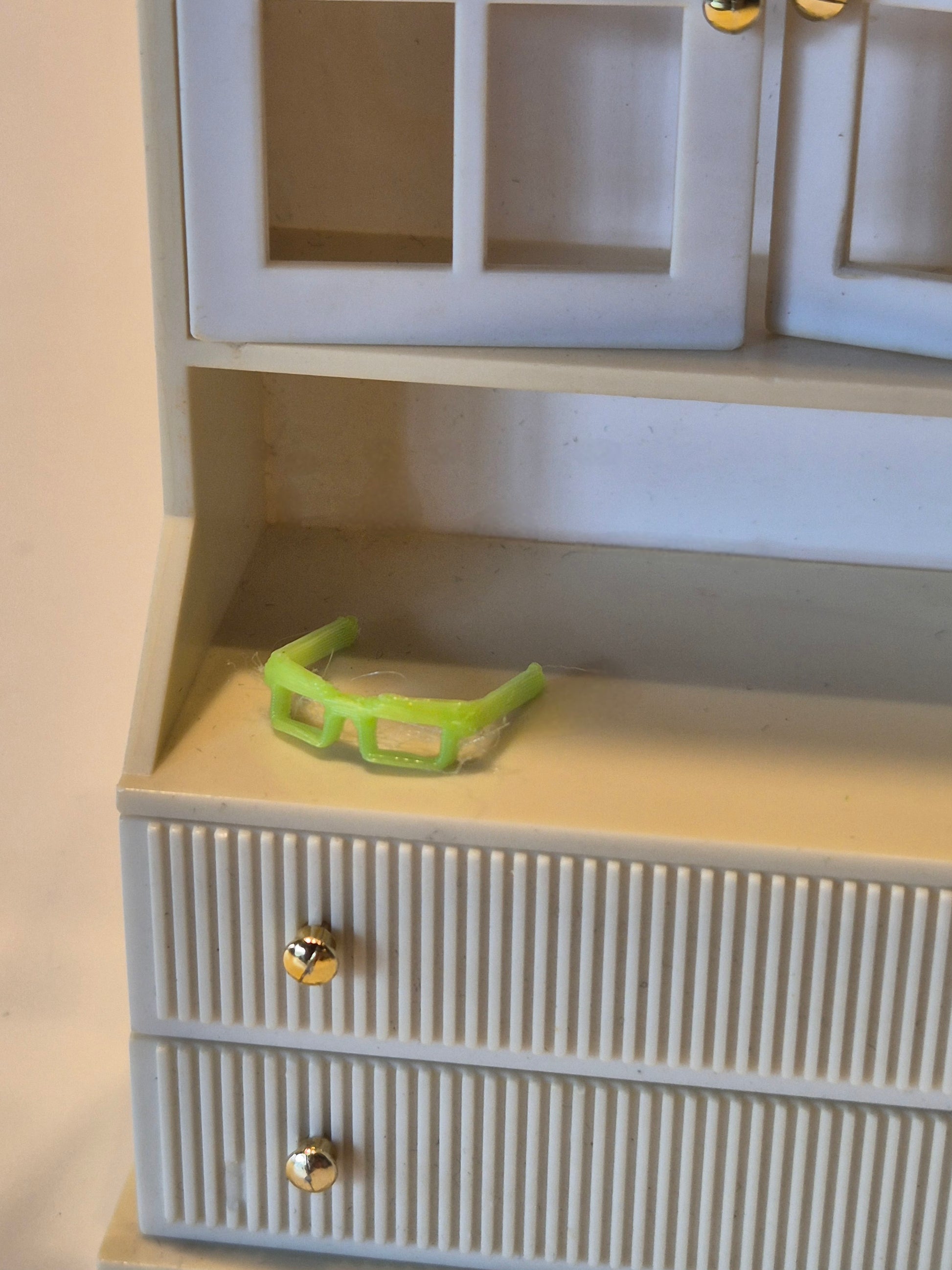3D printet briller i 1:16. Pæne. Neongrønne. De er 3D printet af privat miniature designer