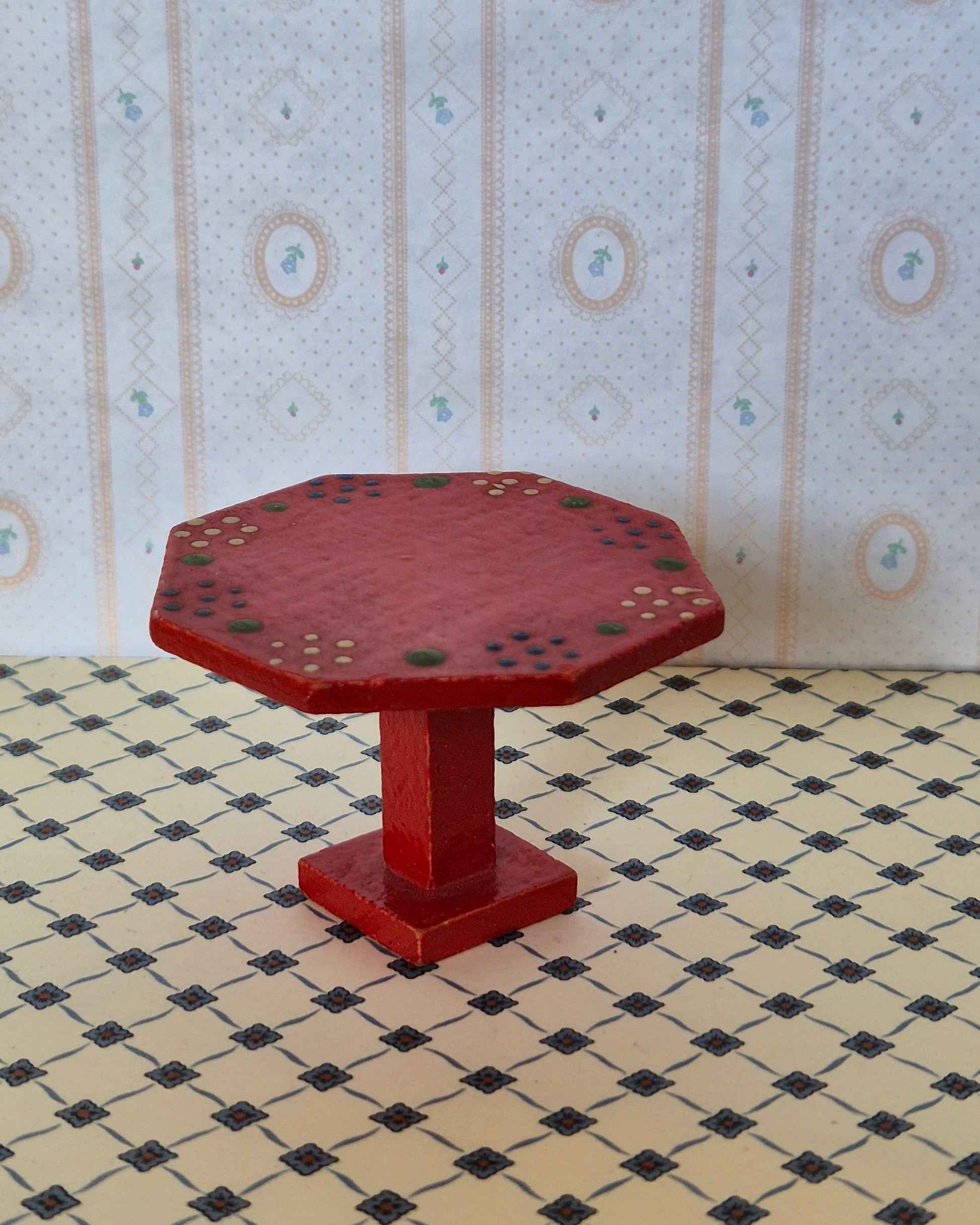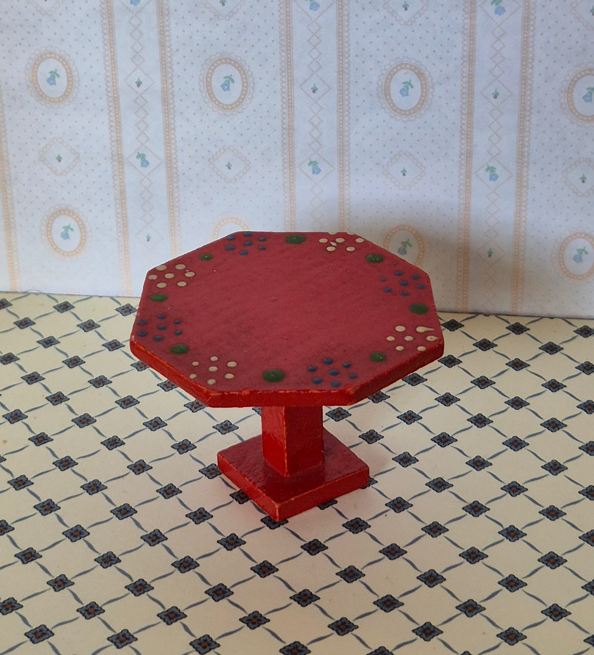 8 kantet 1:16 bord i rød almue stil af Dora Kuhn.