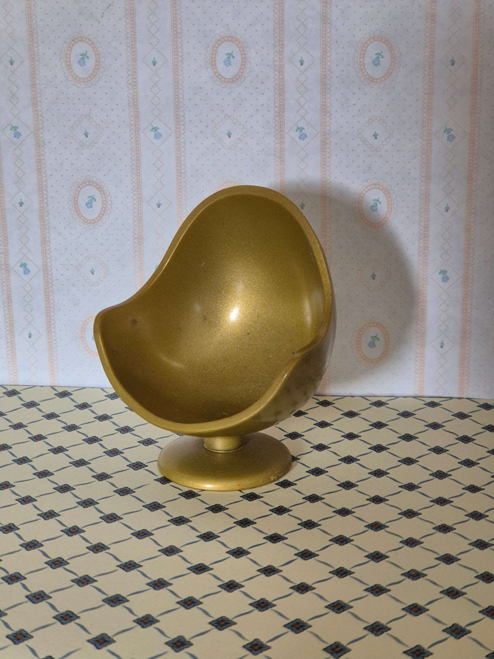 Pæn plastik lænestol i gylden farve. Den passer til 1:18 - 1:16