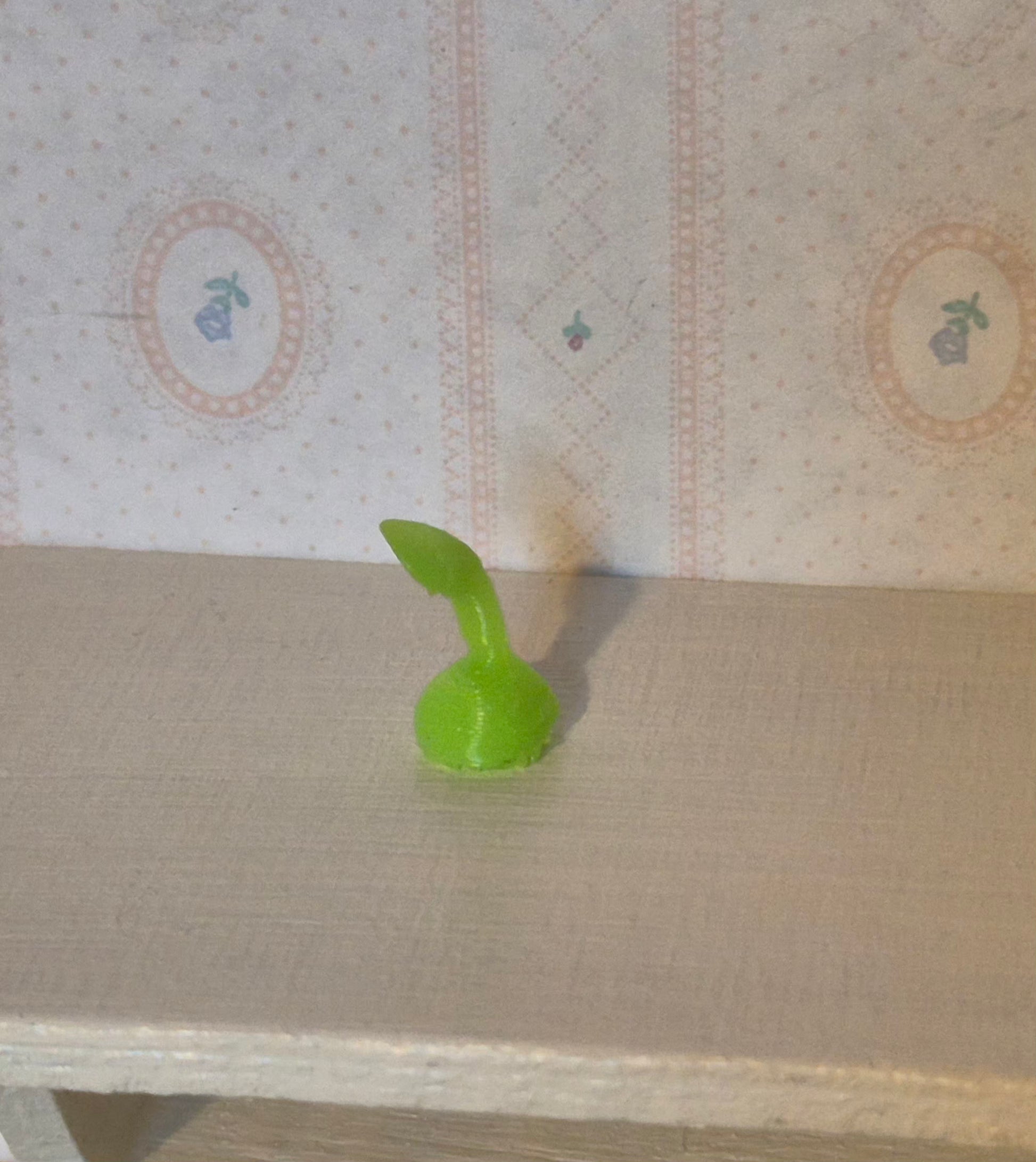 Pæn 3D printet telefon i 1:16. Den er lysegrøn.