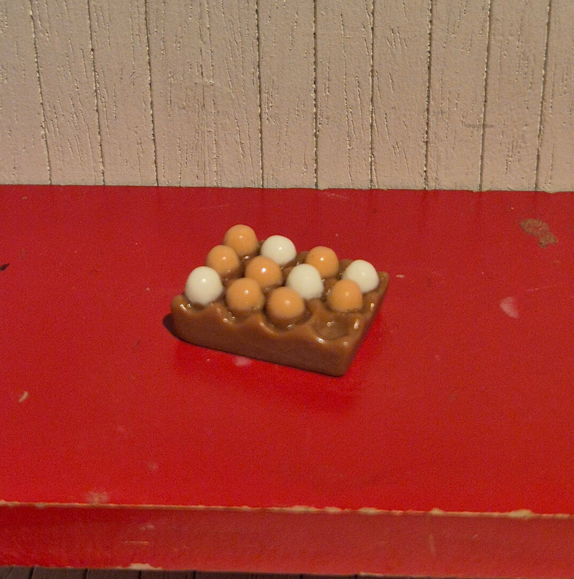 Nice egg tray for miniature or dollhouse. It is a type of resin / plastic.