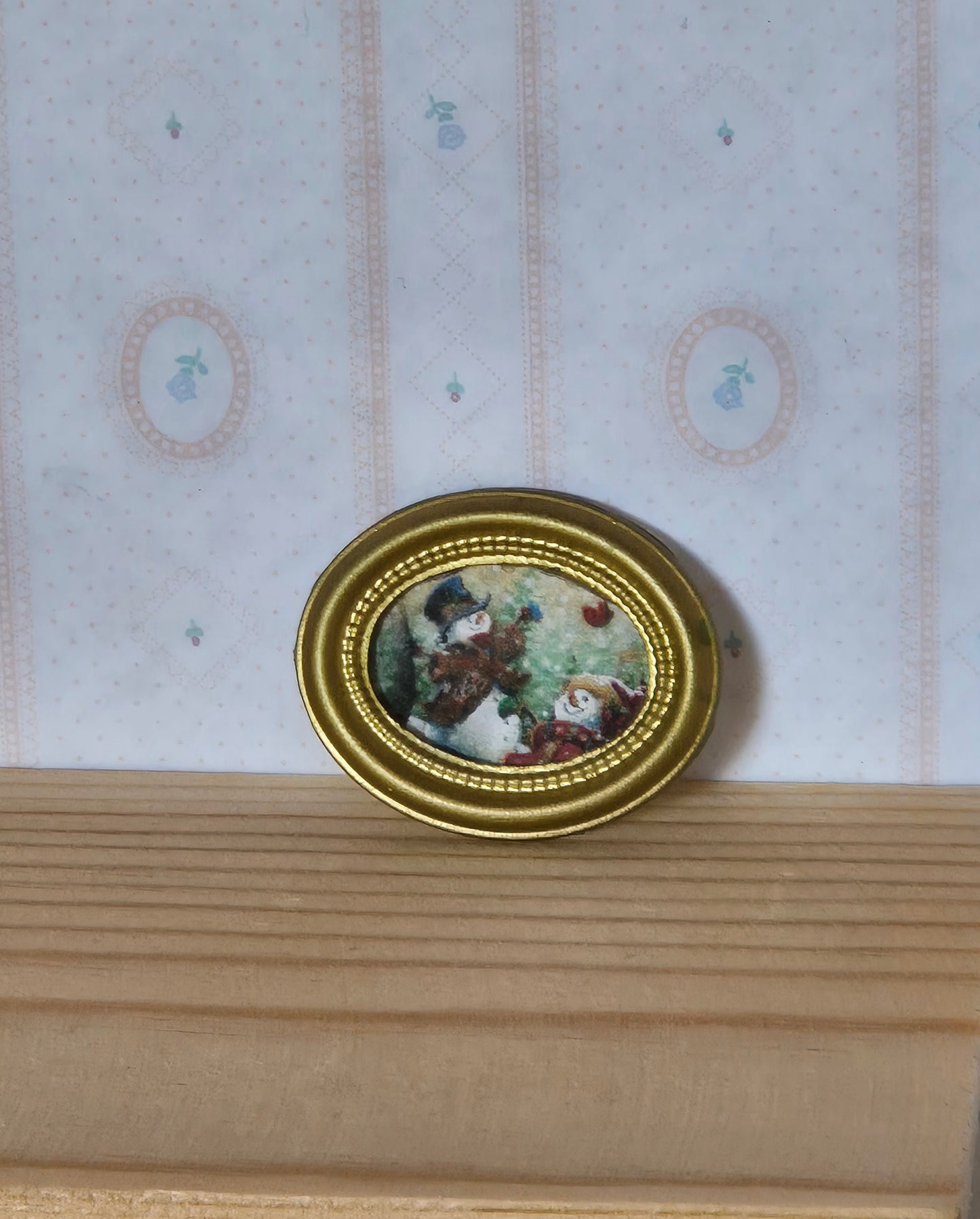 Pænt hjemmelavet billede af snemænd til jul. Det er ca 3,8 cm.