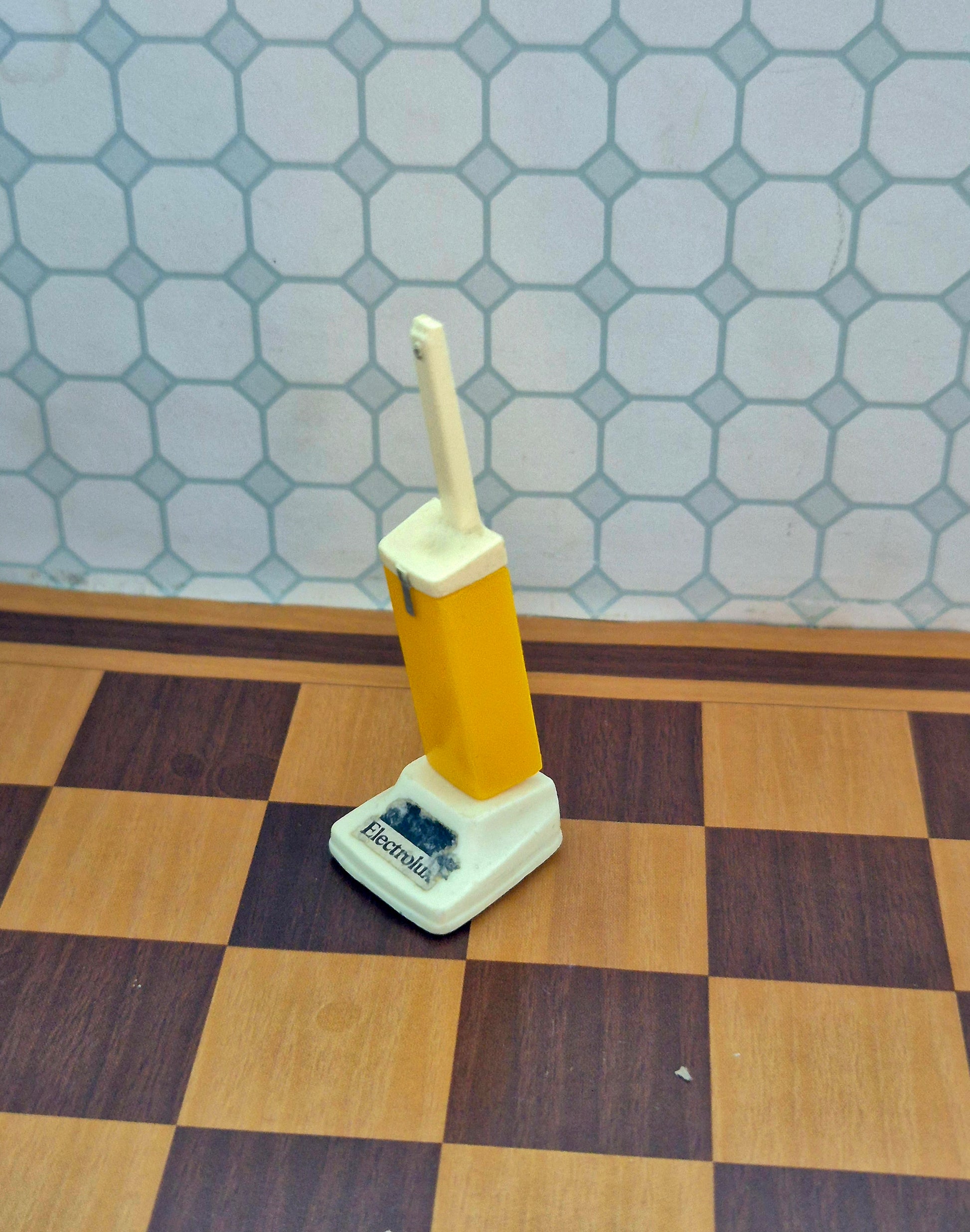 Original Pæn vintage støvsuger med bevægeligt håndtag/skaft til dukkehuset str 1:18 - 1:16 af mærket Caroline Home fra Storbritannien.