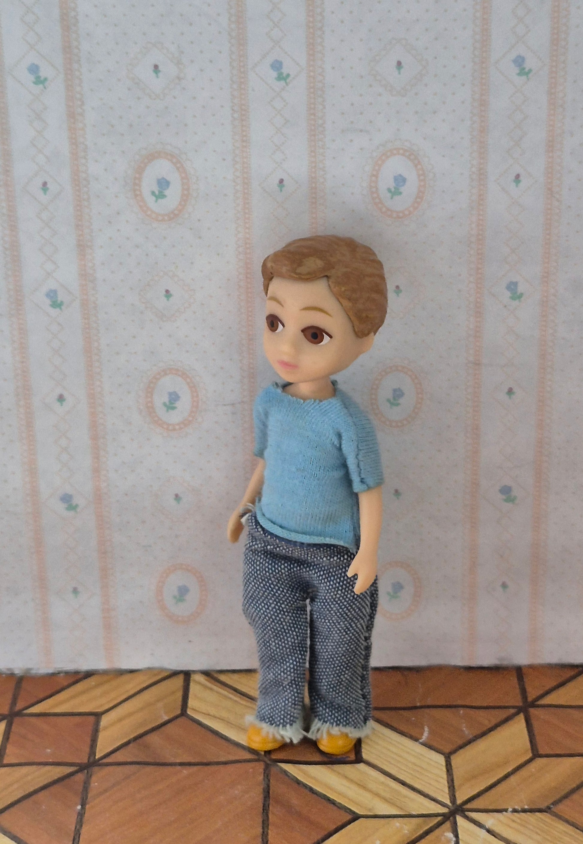 God Djeco dukke dreng 1:16 i udmærket stand, dog lidt brugsspor ved buksekanten.