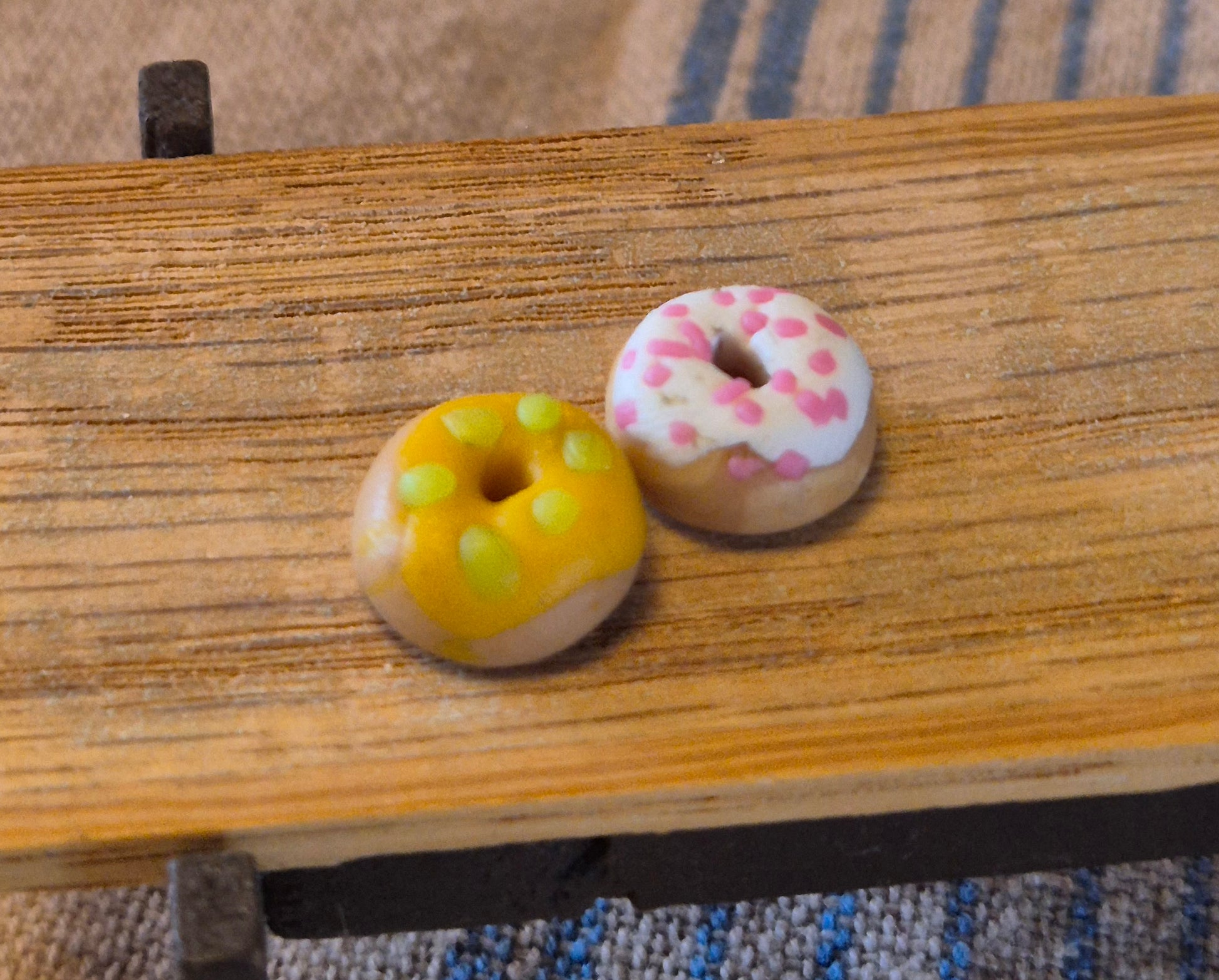 Nice dognuts for the dollhouse. Cakes that can be served for evening tea. Perfect for a dollhouse kitchen or food for a pixie house at Christmas.