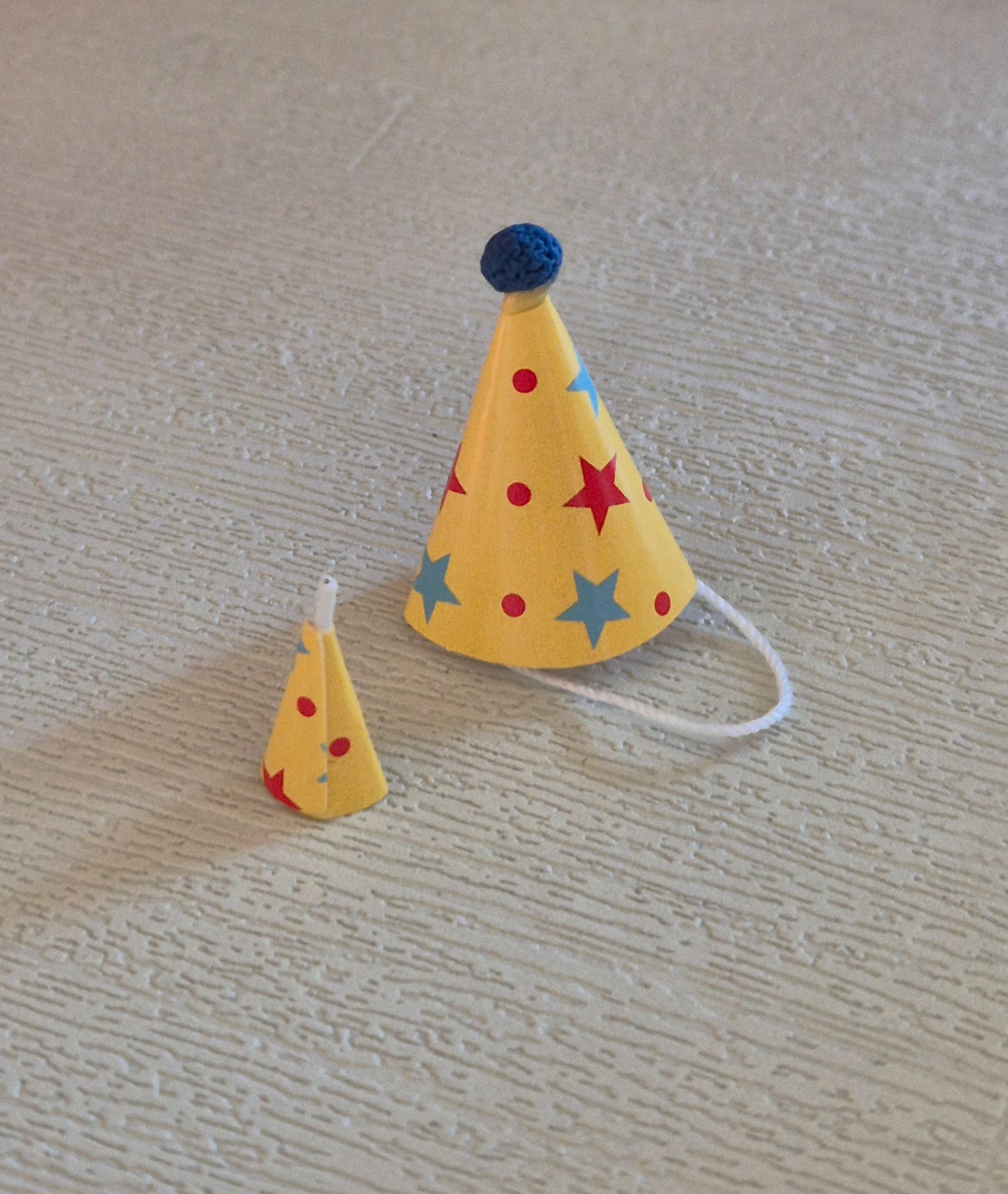 Pæne gule party hatte til fest og højtider. Passer bedst til 1:12, men kan med god vilje bruges til 1:16.