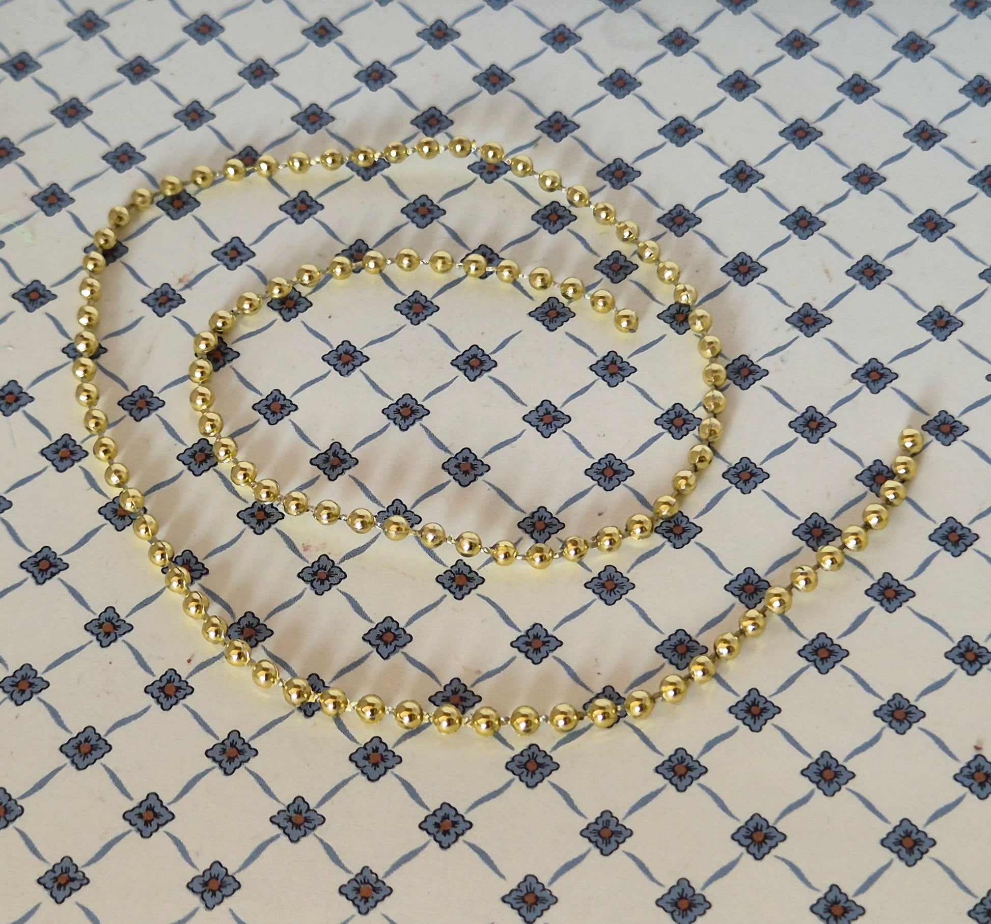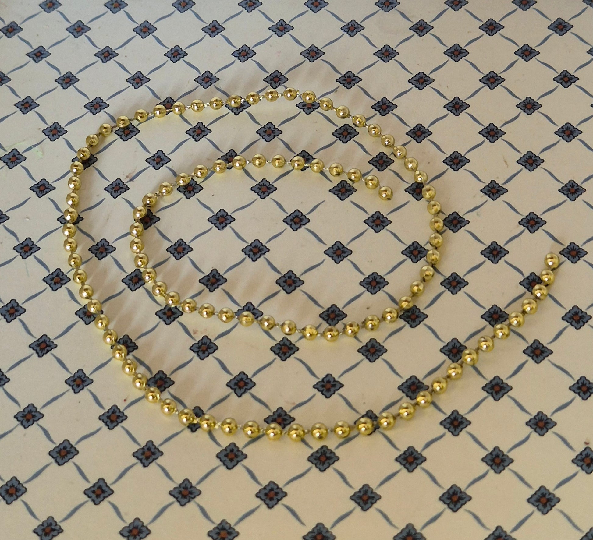 Pæn gylden kæde af plast, der minder om guirlande. Det kan fint bruges til juletræs pynt.