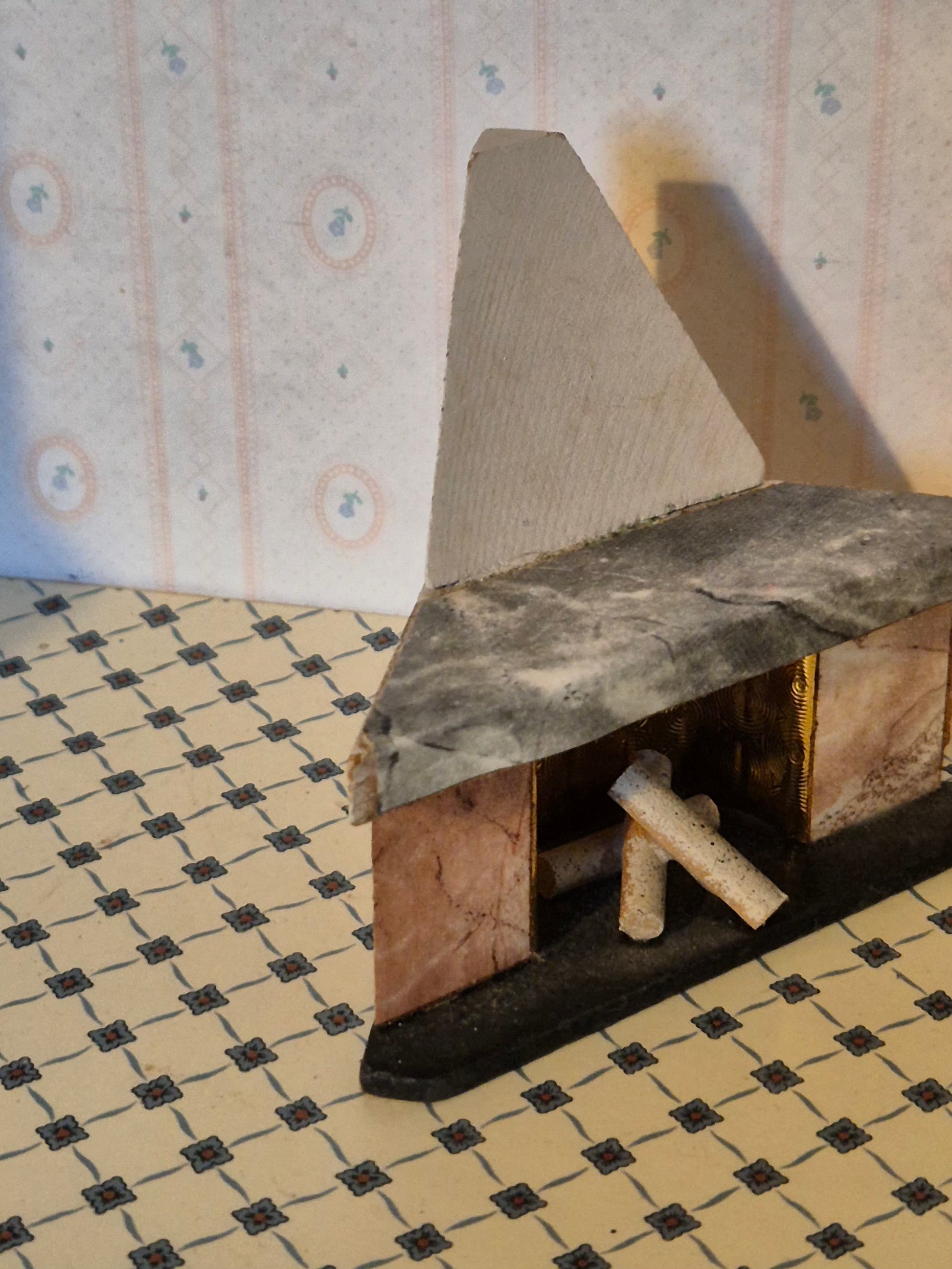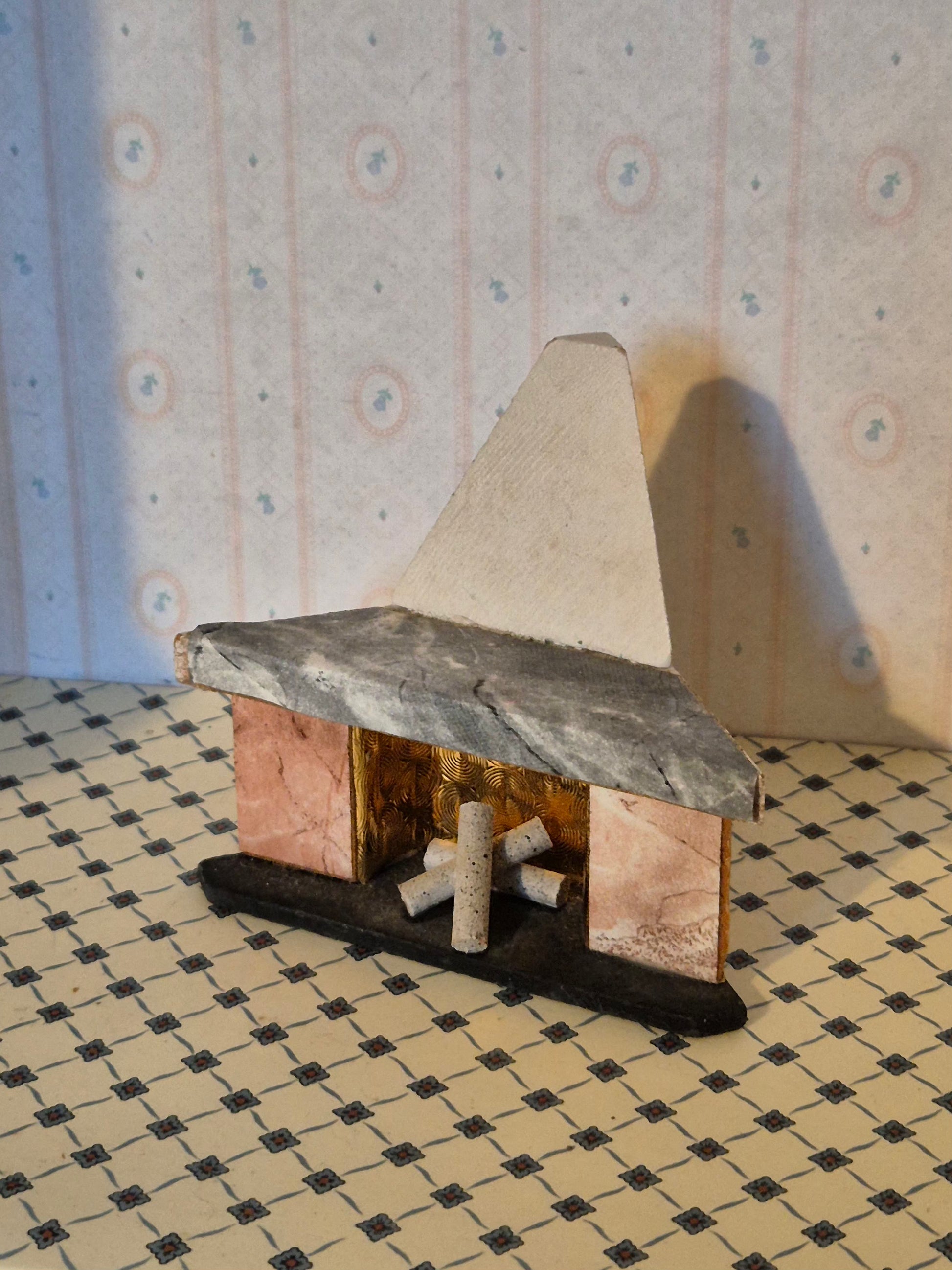 Pæn Hanse af Skandinavien hjørnepejs eller kamin til dukkehuset 1:16.
