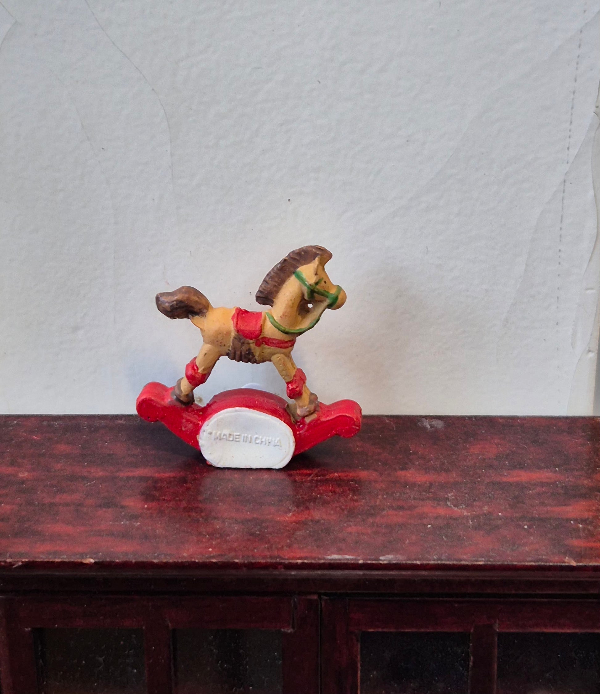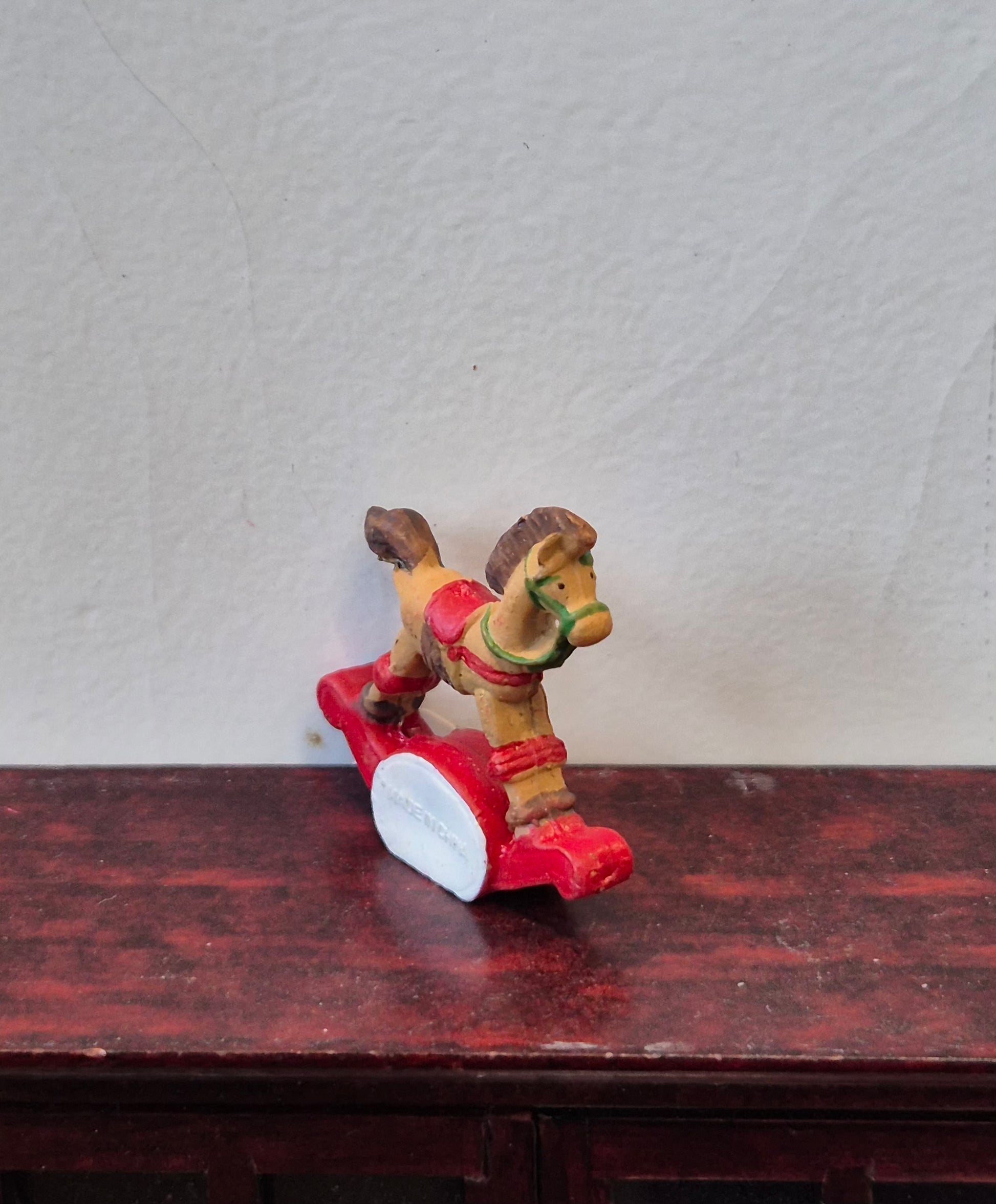 Legetøj gyngehest af resin til dukkehus børneværelset. Ca 1,3 cm høj.