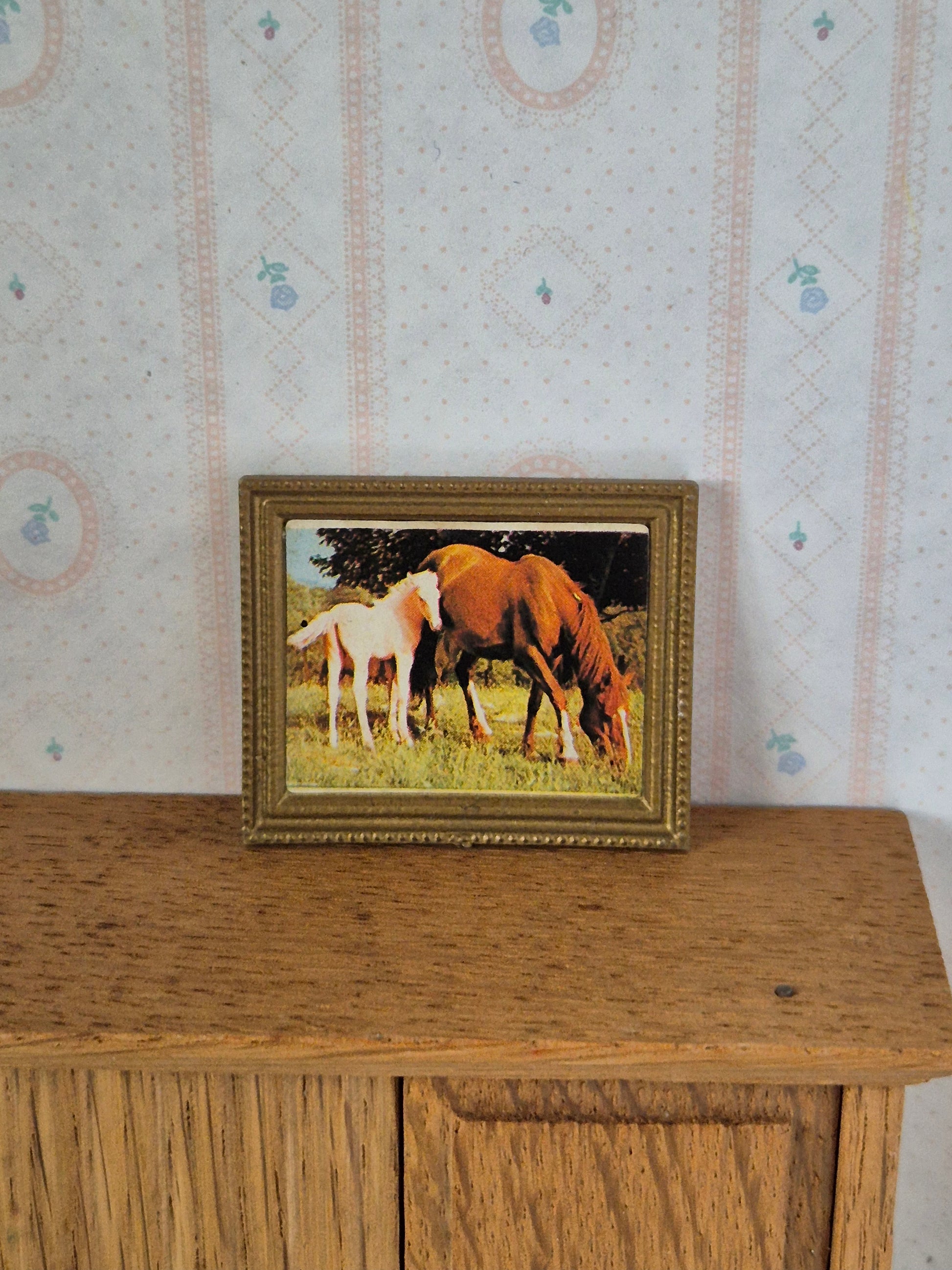 Fint billede af hest og føl af Lisa af Danmark. Vintage billede med patina. God stand