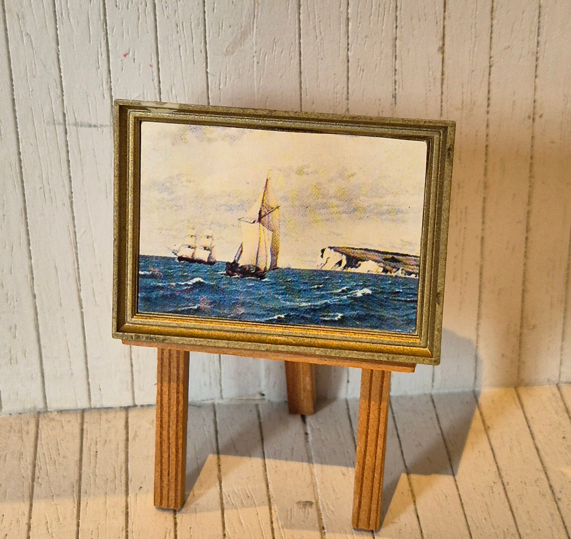 Painting of a ship at sea for a dollhouse by the brand Lisa af Danmark, older painting/picture.
