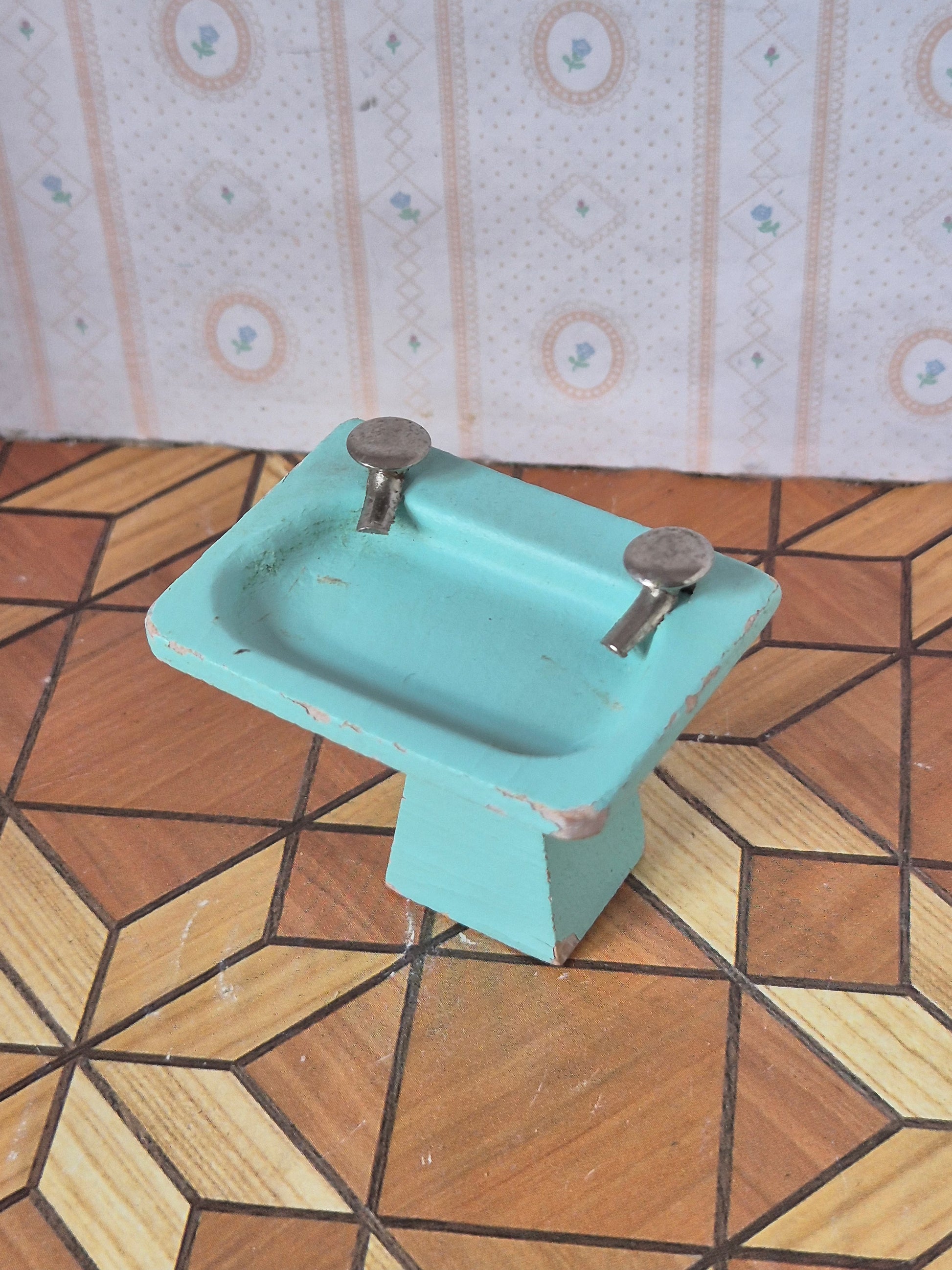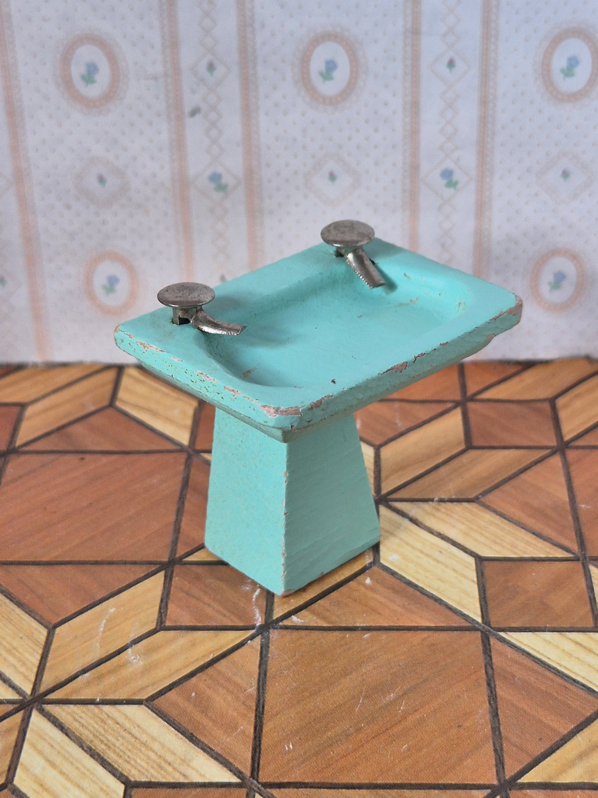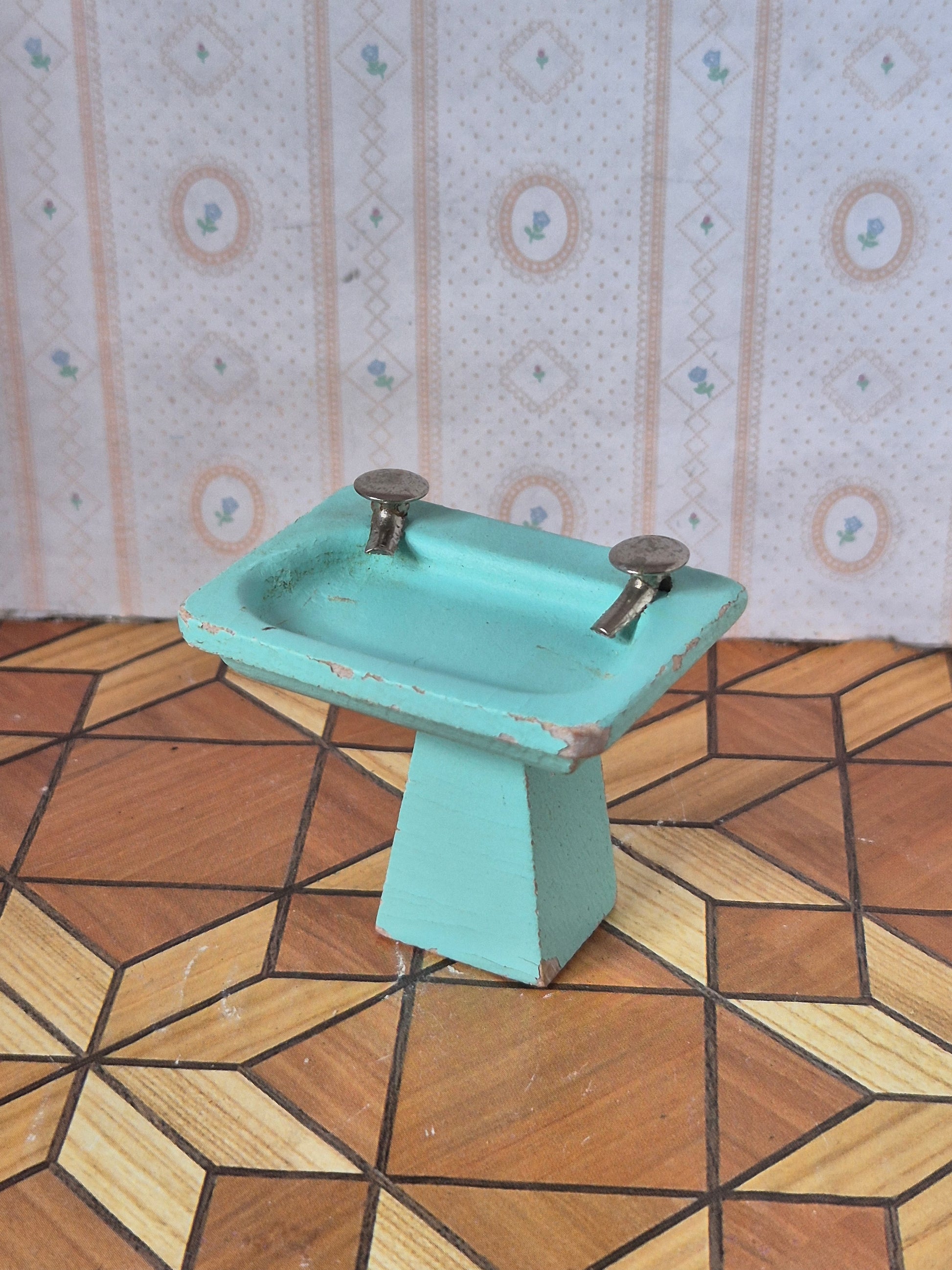 Pæn vintage Lisa håndvask af turkis træ. Der er patina og brugsspor. Det er str 1:16.