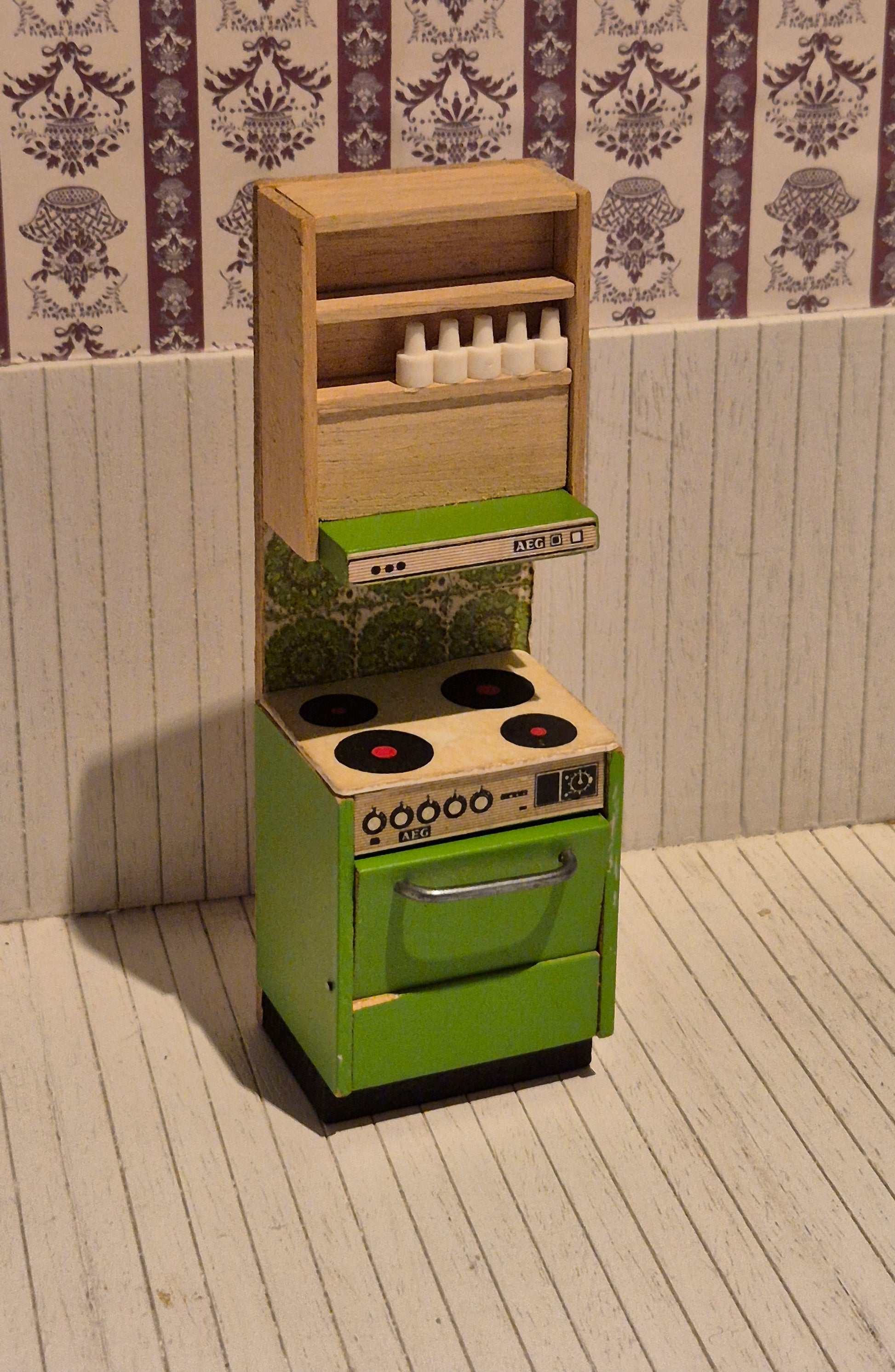Nice original and intact wooden stove with green shades from the brand Lisa of Denmark.