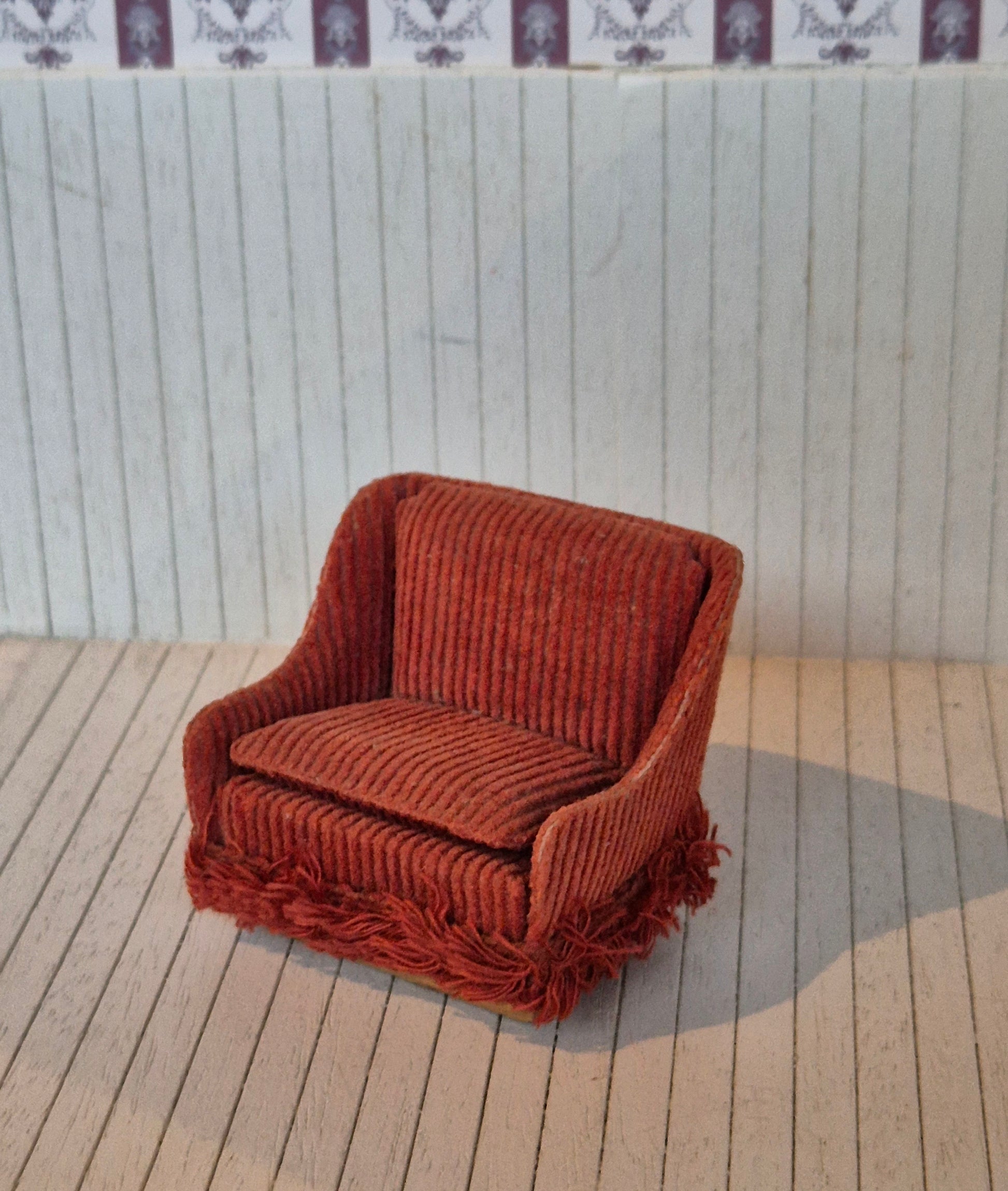 Dark red-brown velvet armchair by Lisa of Denmark. Good, neat and fine condition.