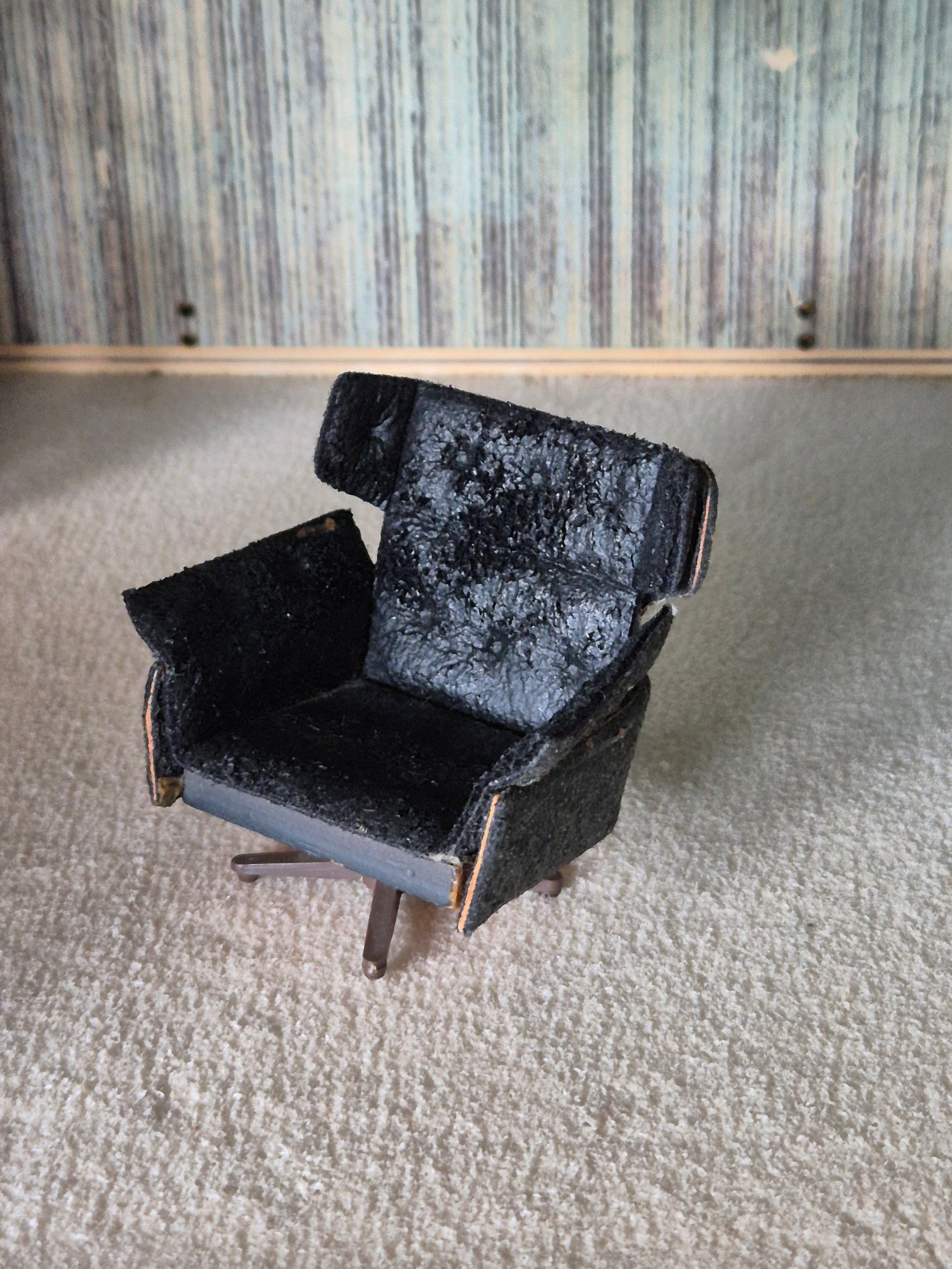 Lisa lænestol, drejestol, af læder, mørk i det, læderet. Foden er lidt løs, men drejer fint.