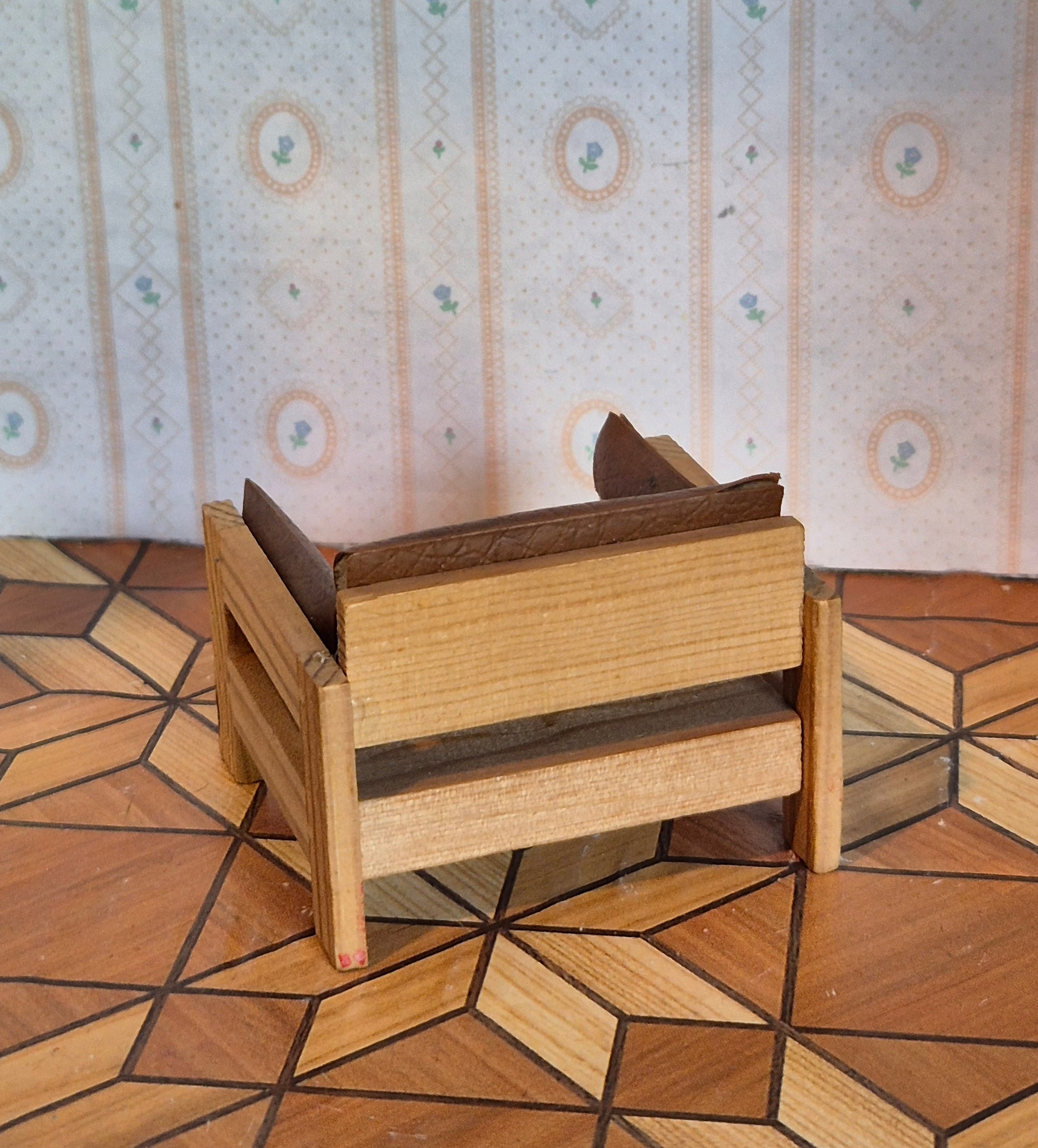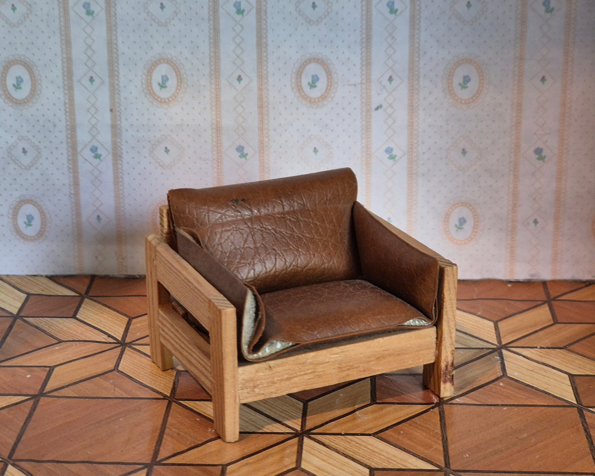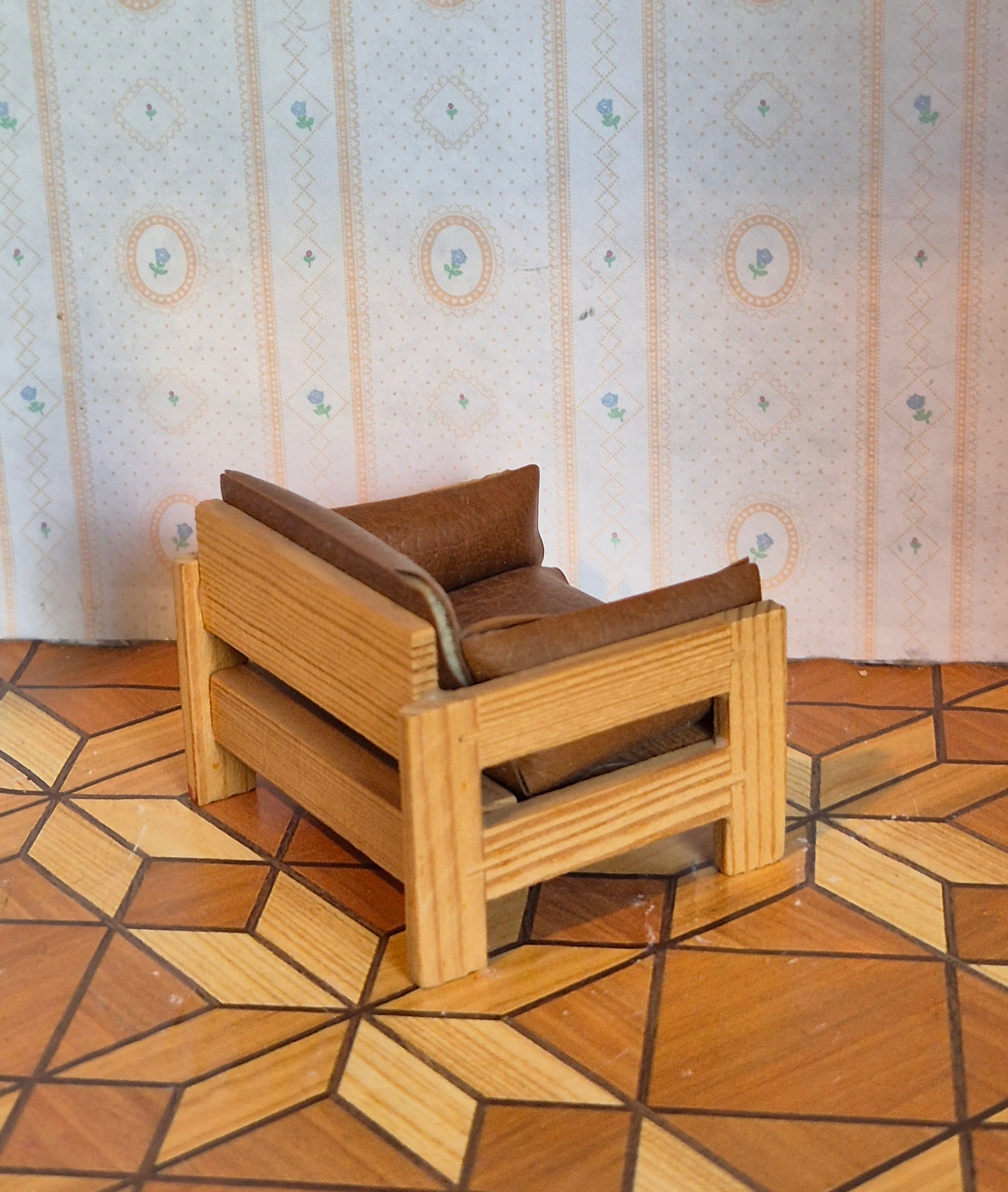 Lisa vintage lænestol af træ med lysebrunt lædersæder. Ok stand, dog skrammer, slidmærker og patina.