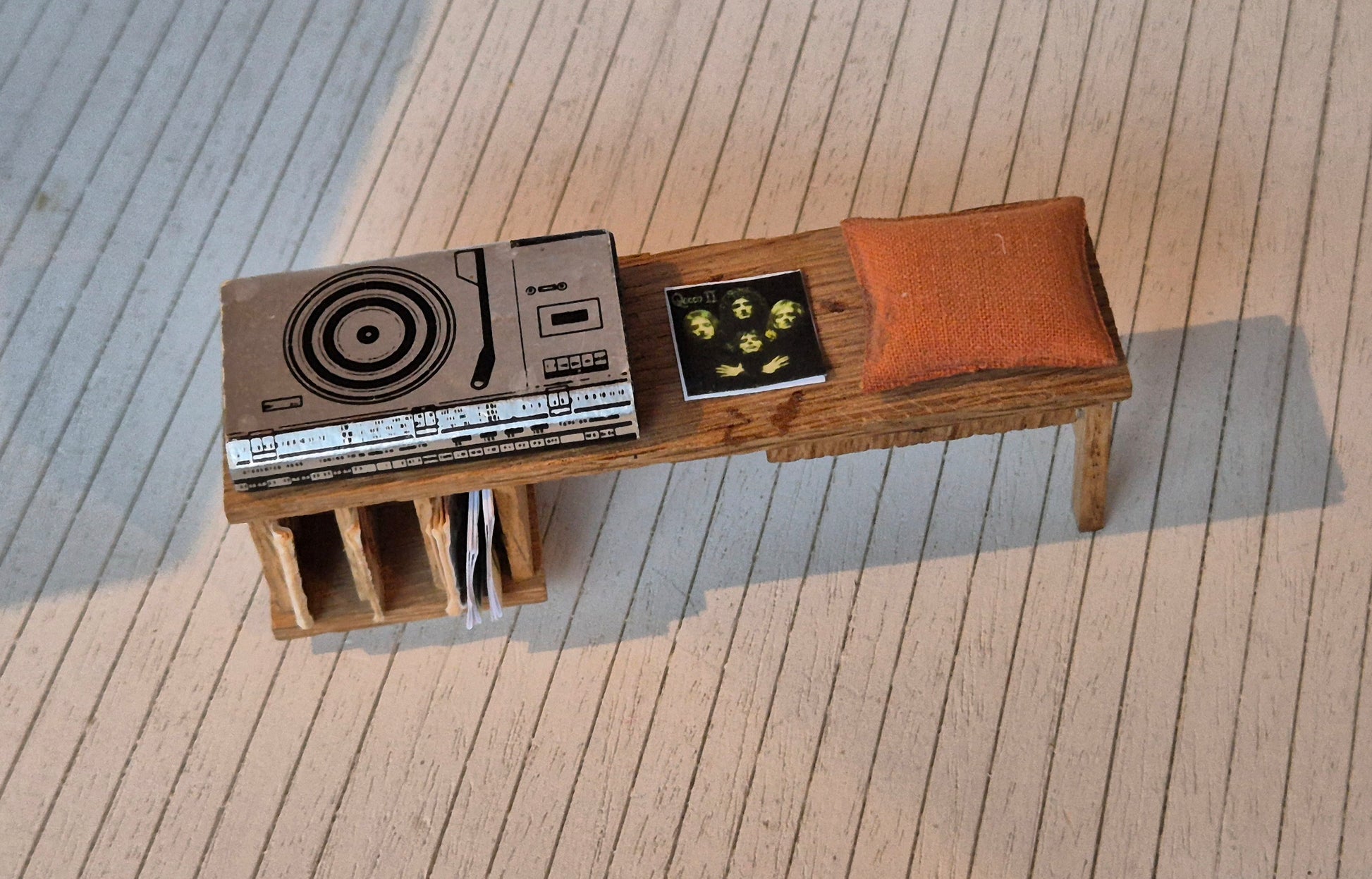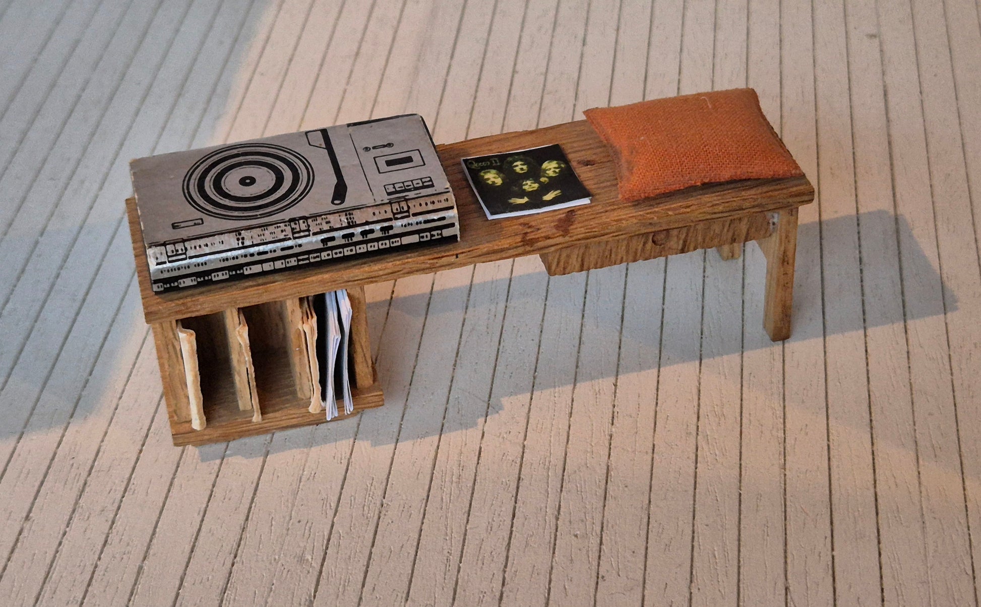 Nice Lisa of Denmark music bench with system, orange cushion and plates.