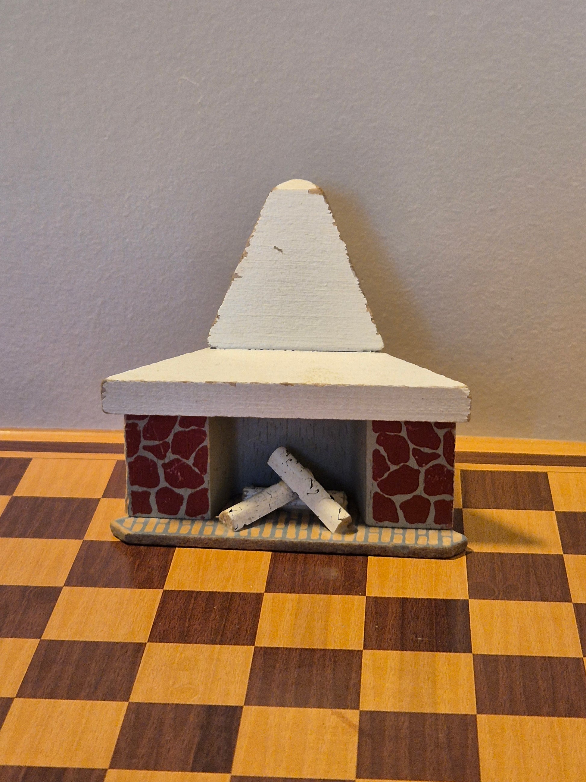 Pæn 1:16 hjørnepejs af træ, vintage, af mærket Lisa af Danmark. Der er brug af spor og skrammer.
