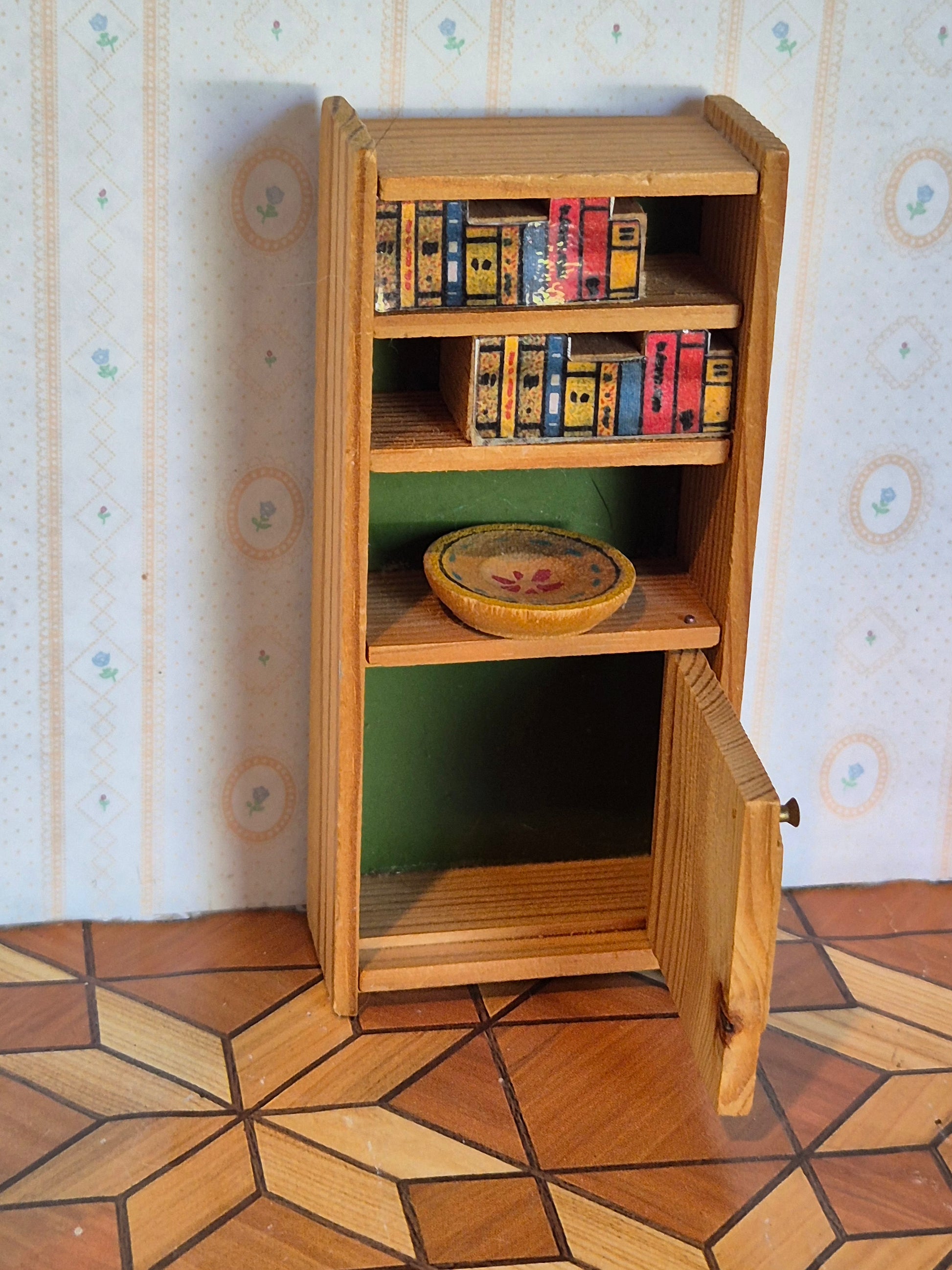 Fin pæn original Lisa af Danmark reol med grøn bagvæg. Den er af fyrretræ.