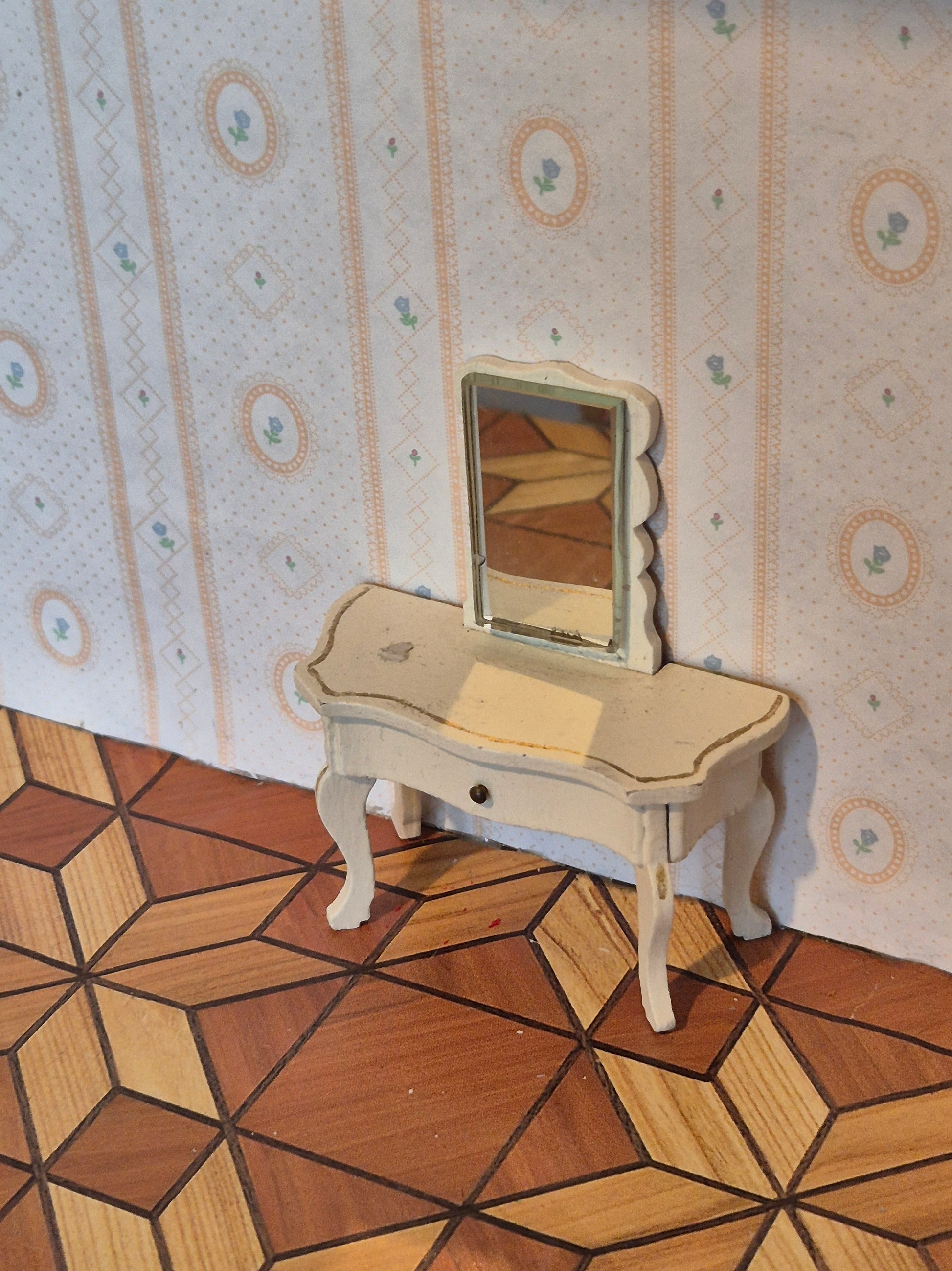 Fint toiletbord af Lisa af Danmark, hvidt i rokoko stil med gyldne detaljer.