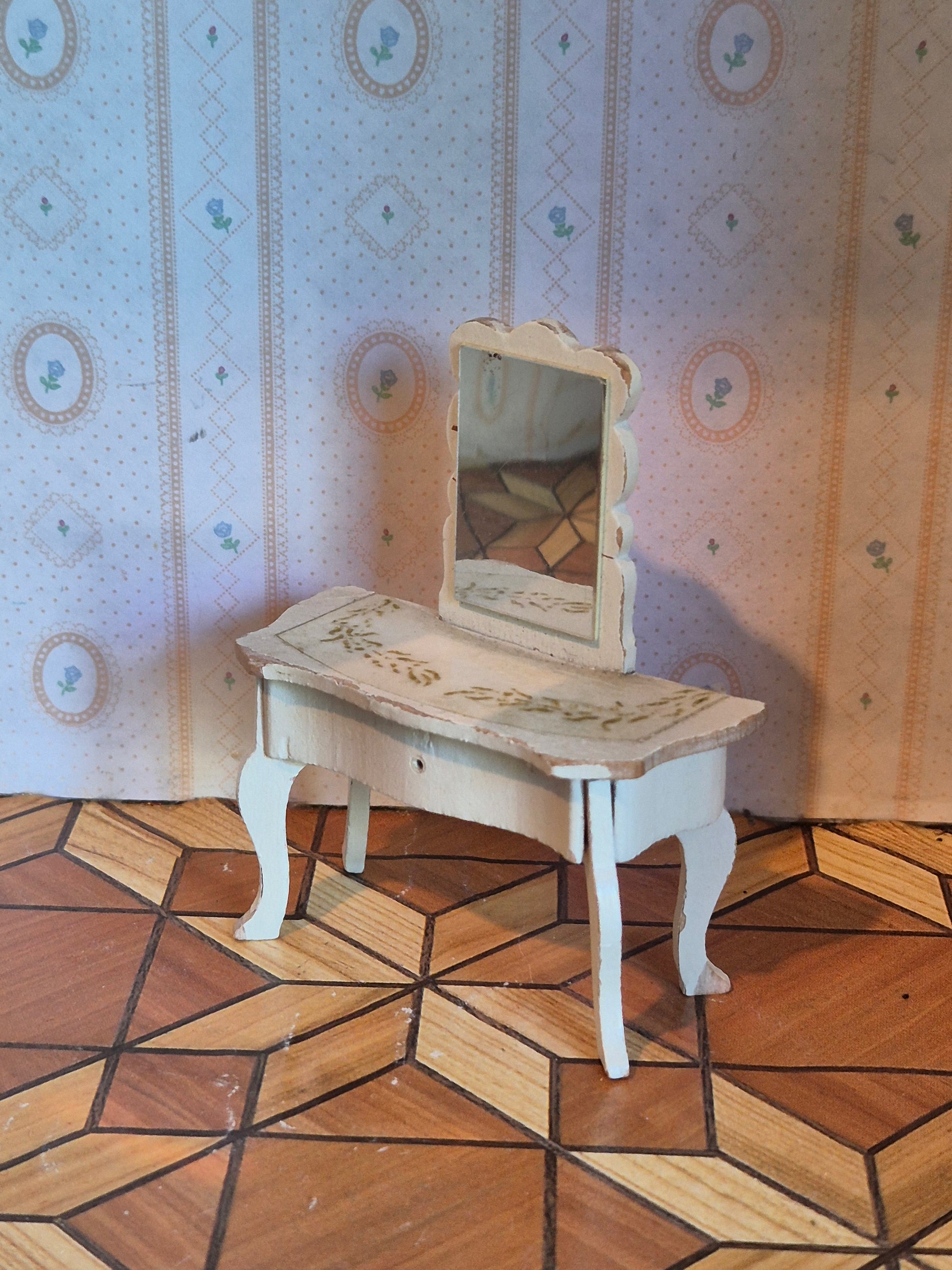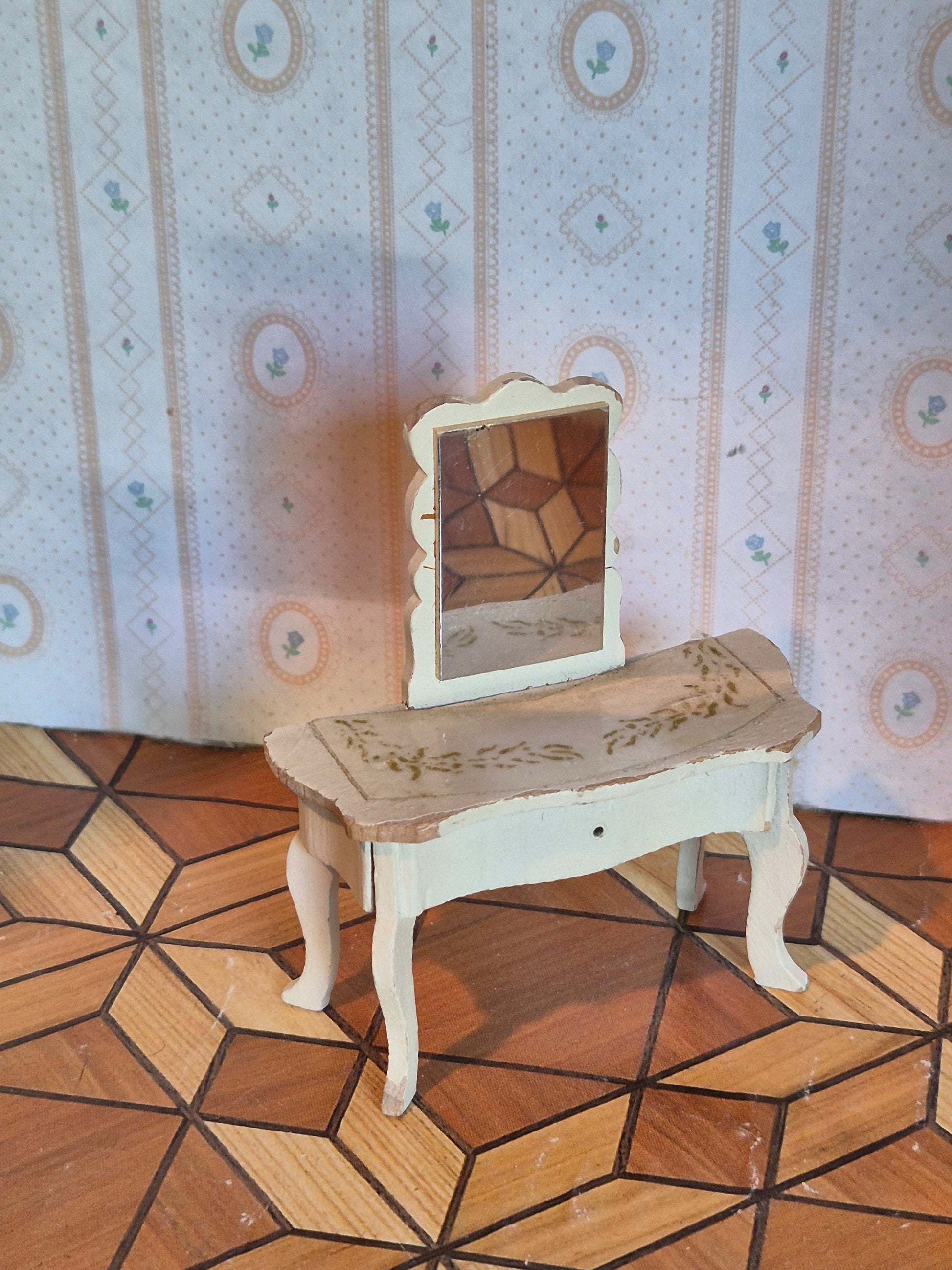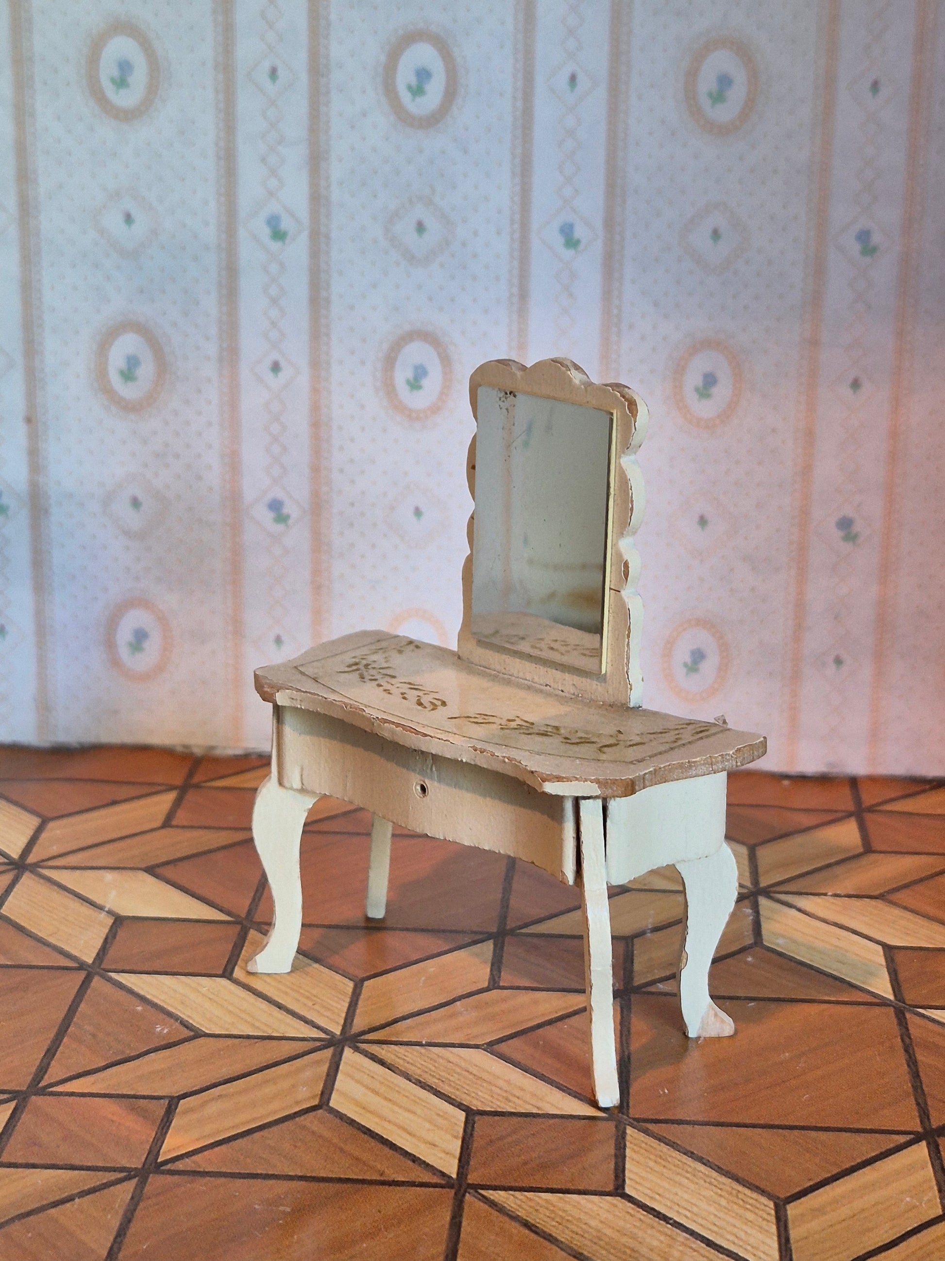 Pænt vintage hvidt rokoko sminkebord af Lisa af Danmark. Der er patina og brugsspor.