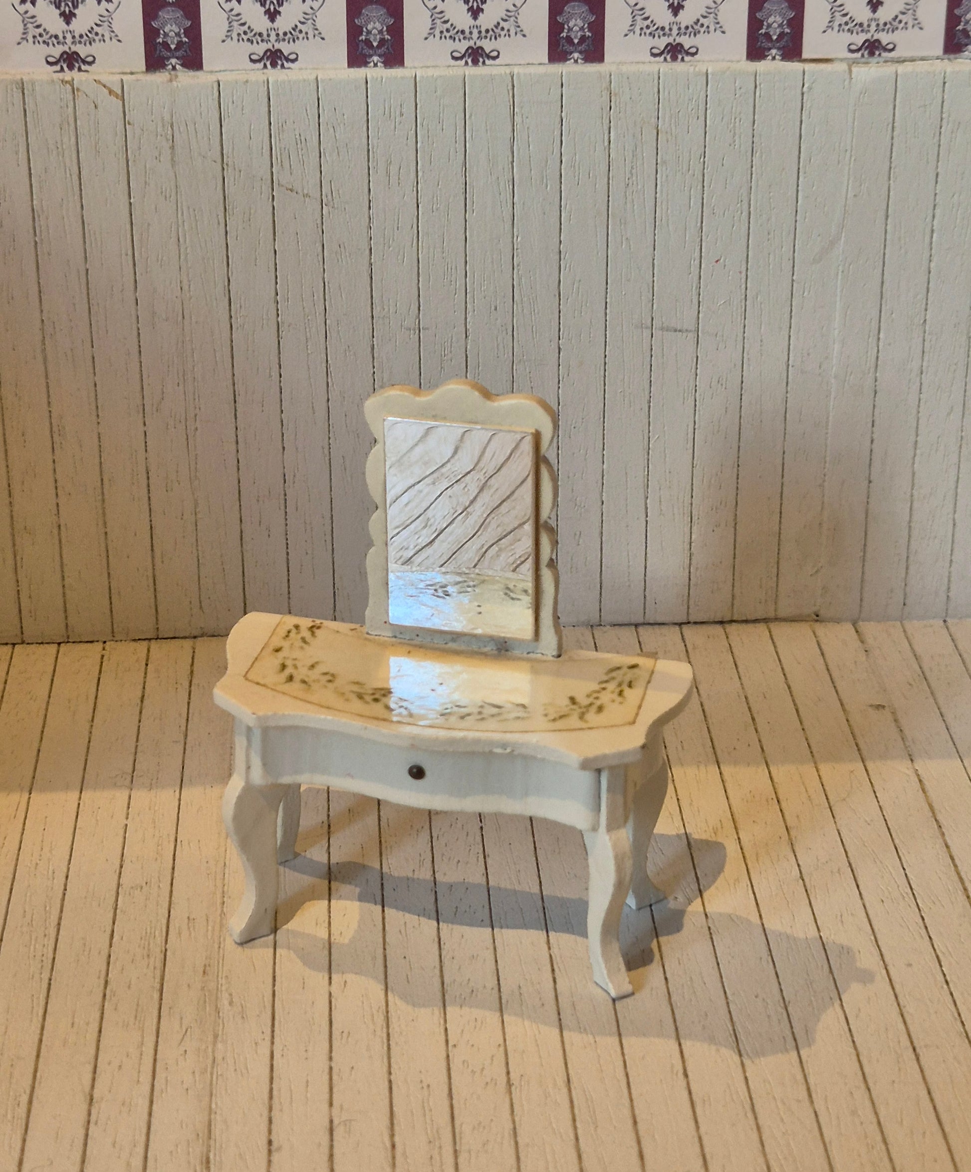 Lisa of Denmark dollhouse furniture, vintage dressing table or dressing table in white rococo style.
