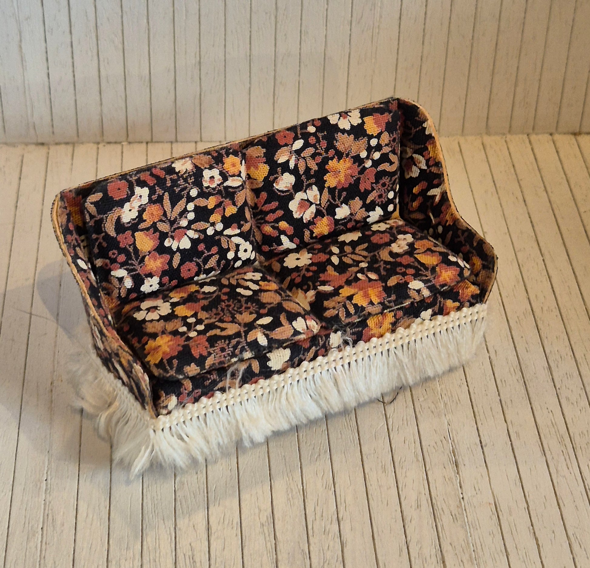 Dollhouse furniture. Nice 2-seater sofa by the Danish brand Lisa af Danmark. Good sofa for the dollhouse living room. Good condition.