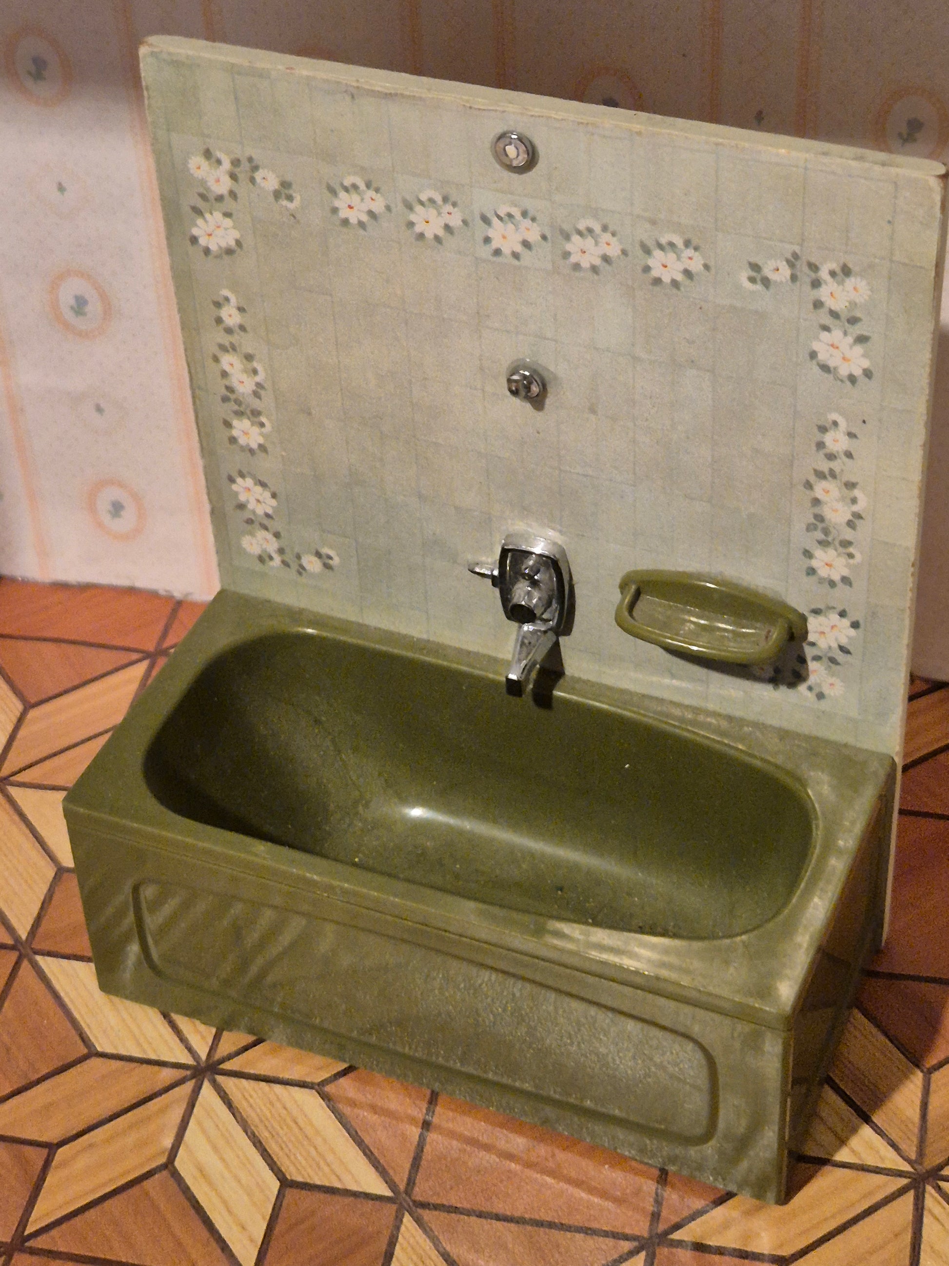 Ældre Lundby badekar. Brugt med mangler. Bruges som reservedel.