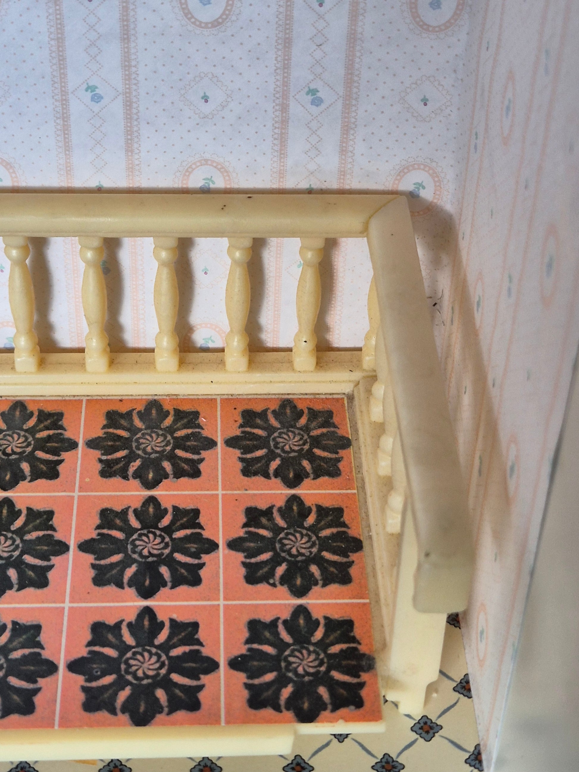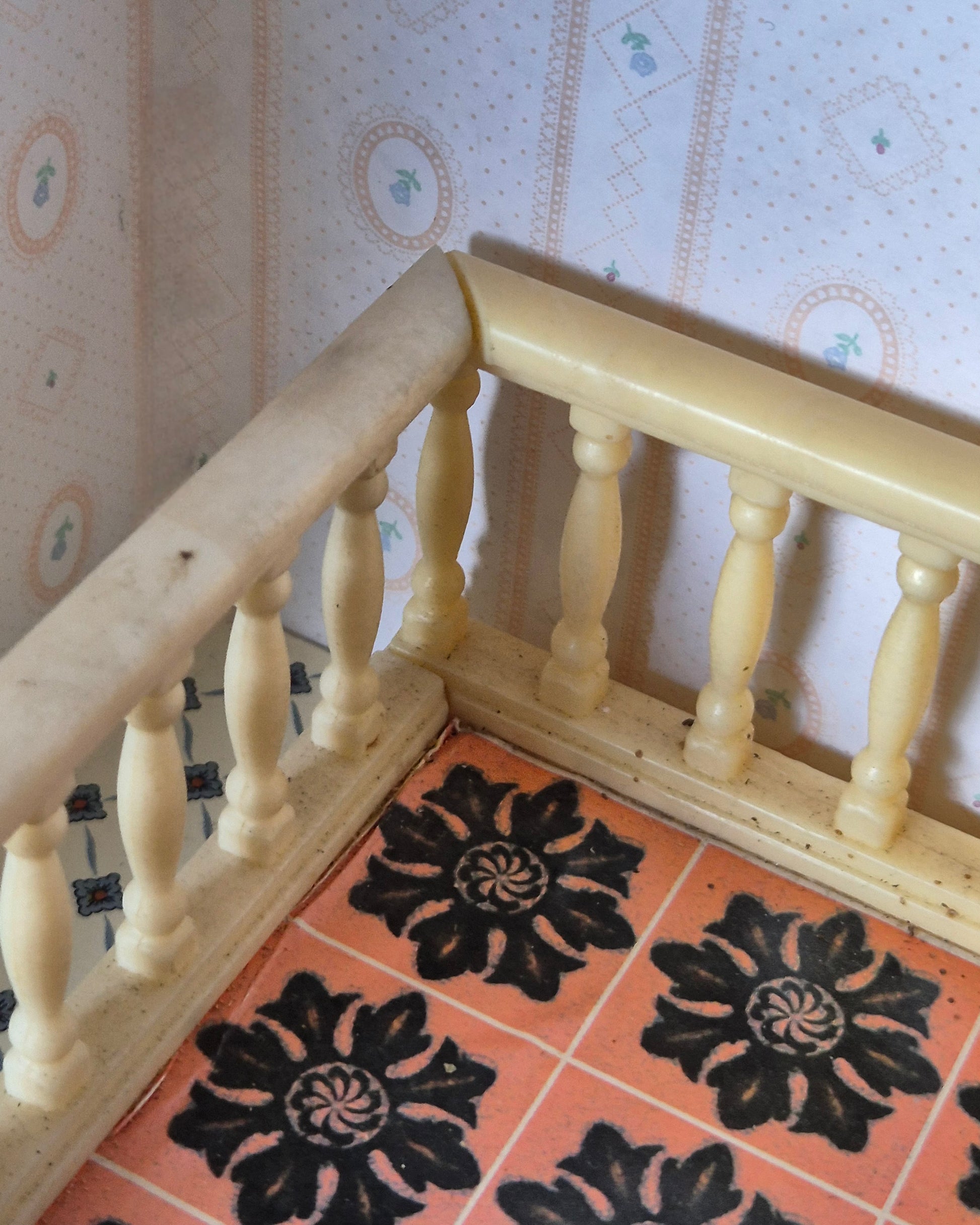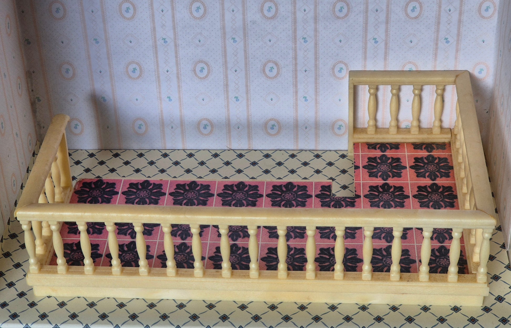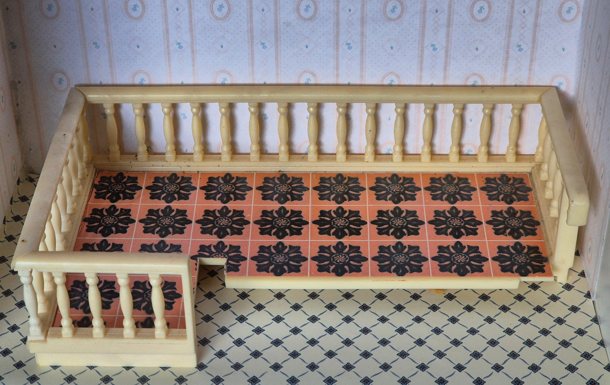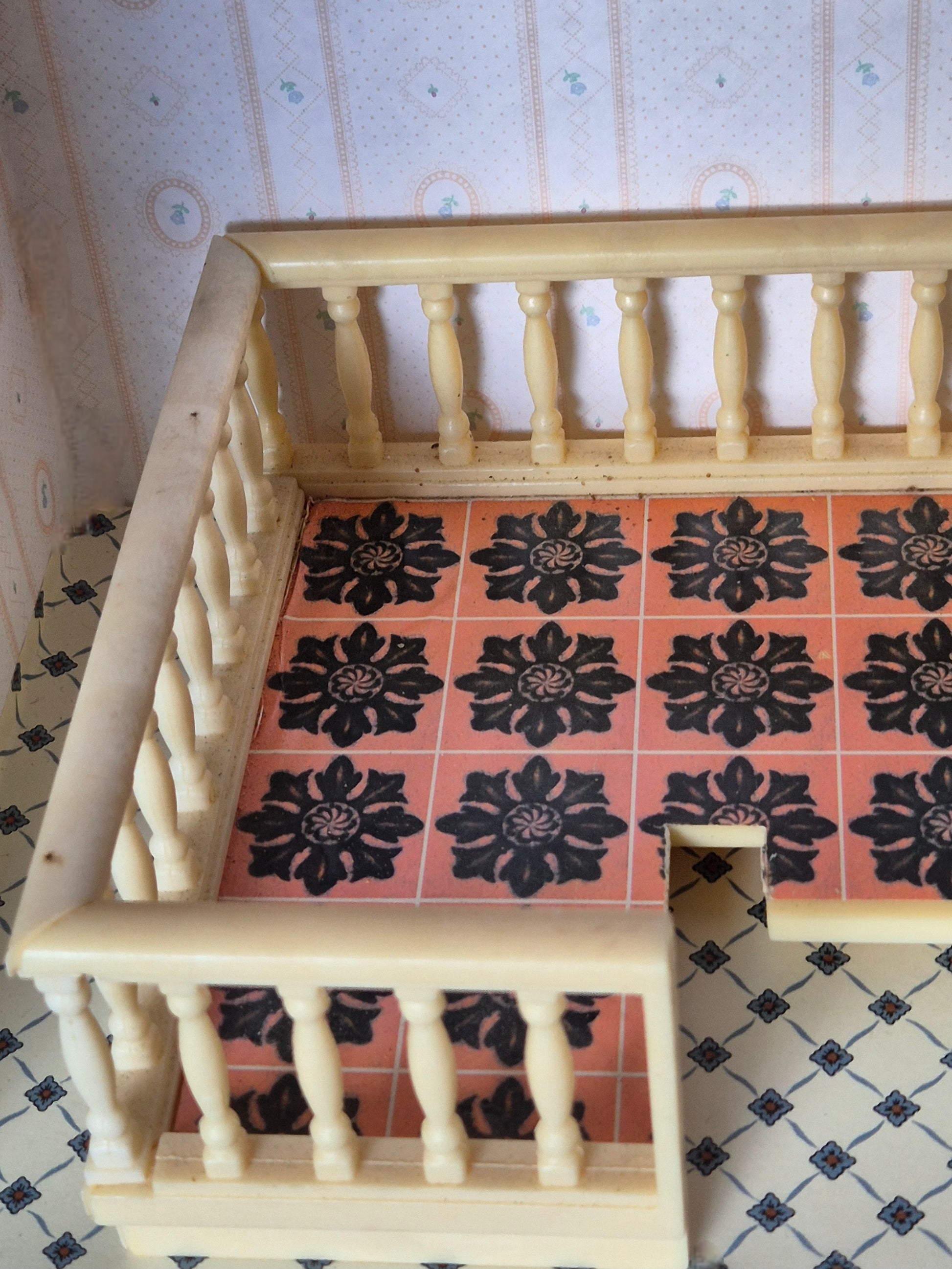 Vintage Lundby Balkon med rækværk.